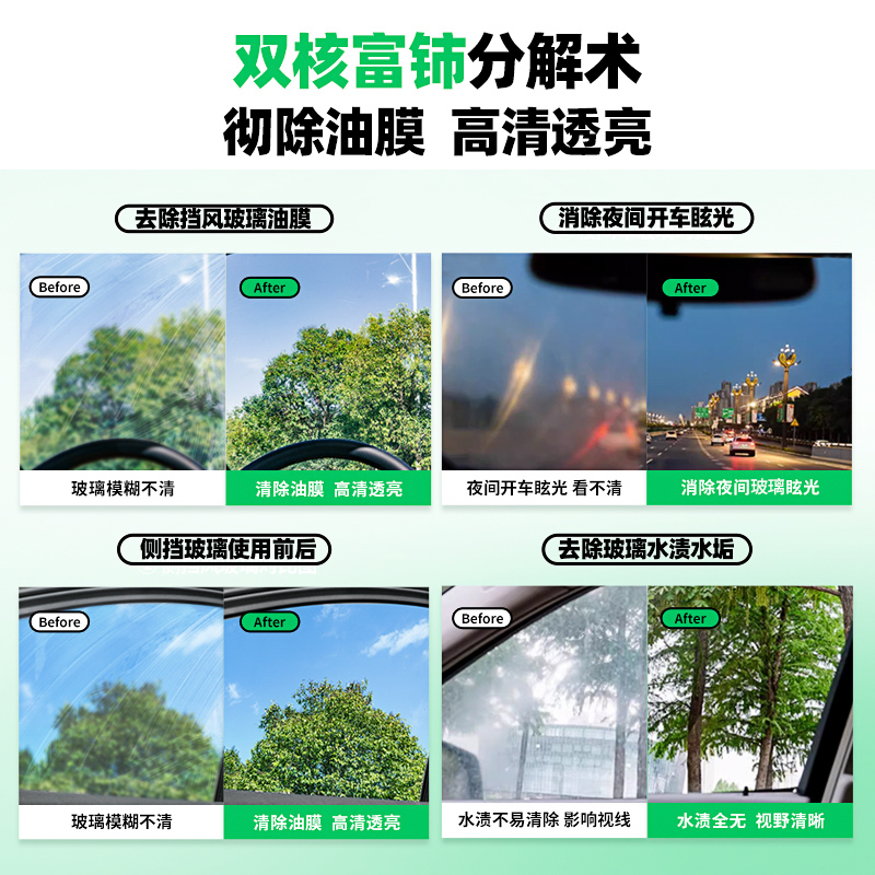 宝能汽车玻璃恢覆剂油膜去除剂强力去污驱水剂前挡家用玻璃清洁剂
