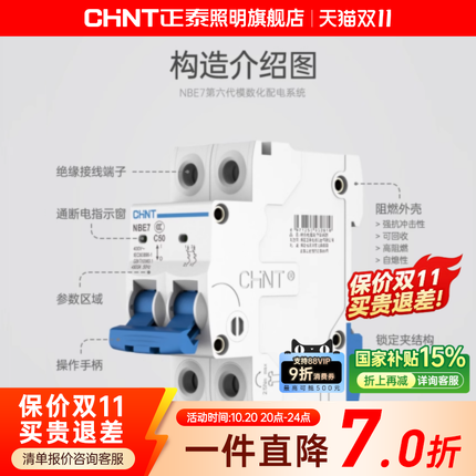 正泰空气开关NBE7小型断路器63A总空开家用1P短路保护2P空调电闸