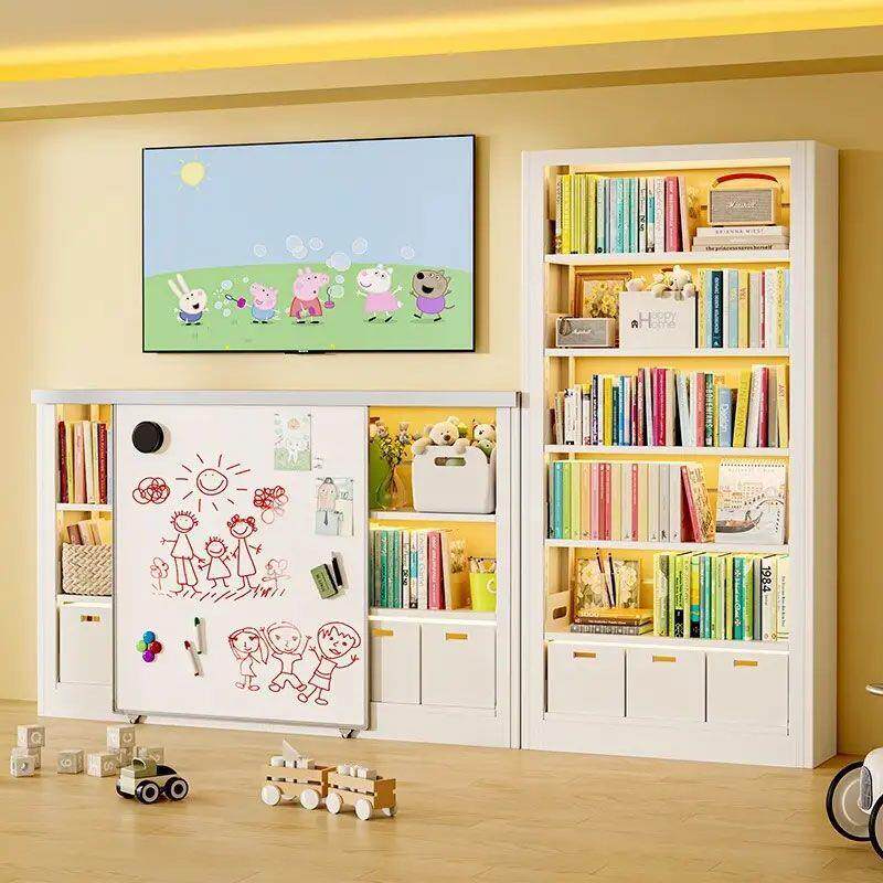 钢制书架磁吸白板门书柜家用落地客厅书房绘本架儿童房置物书架