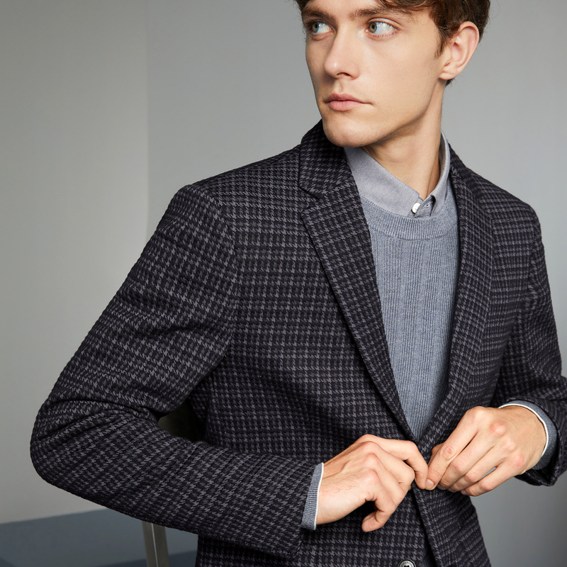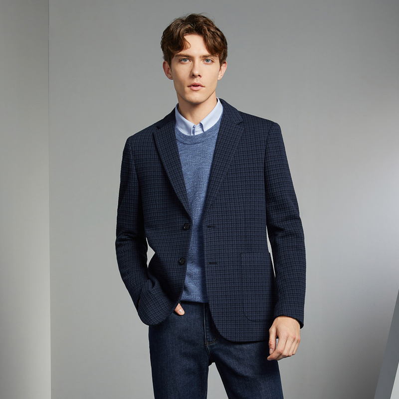 【千鸟格】柒牌清仓男装西服男春季新款商务休闲修身针织单西外套