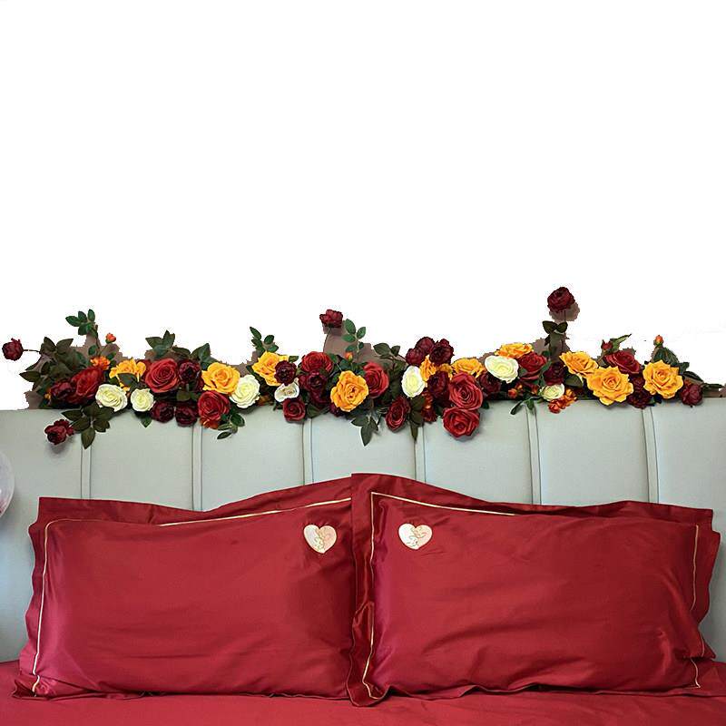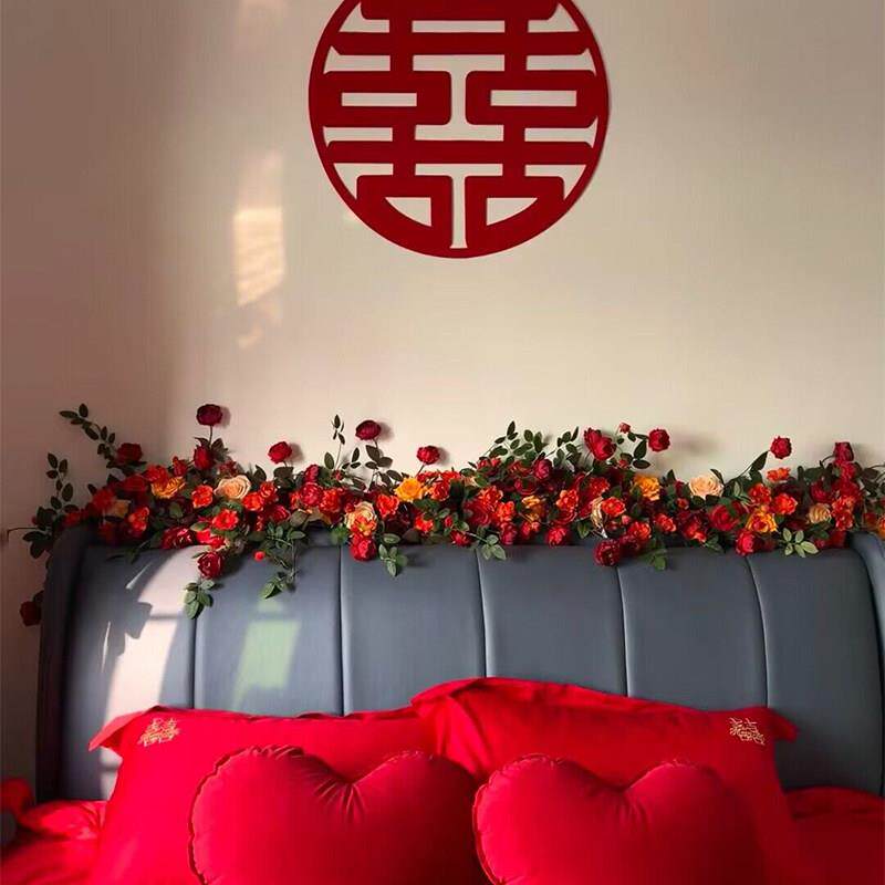 结婚红色喜庆新房床头装饰彷真玫瑰花藤 长条藤蔓婚房摆花布置