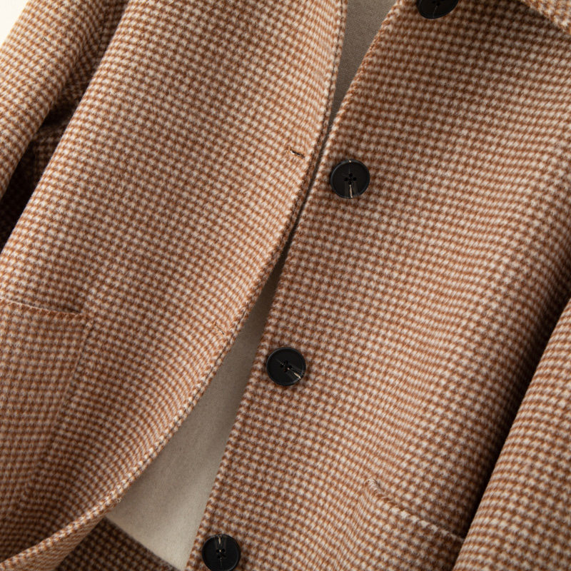 双面羊绒呢大衣女短款新款千鸟格羊毛呢外套小个子宽松大码妈妈装