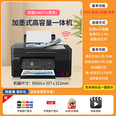 佳能G3830 G4870原装连供墨仓式彩色喷墨复印扫描打印一体机家用