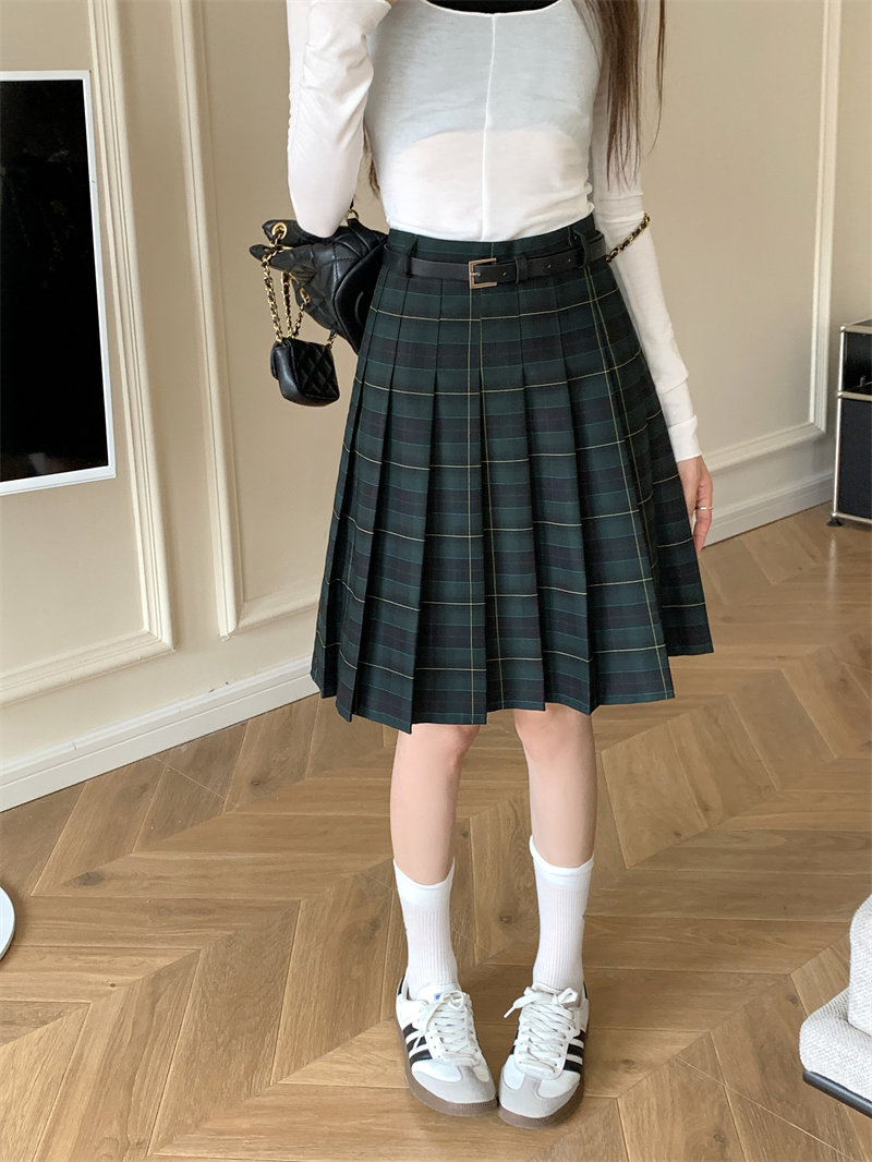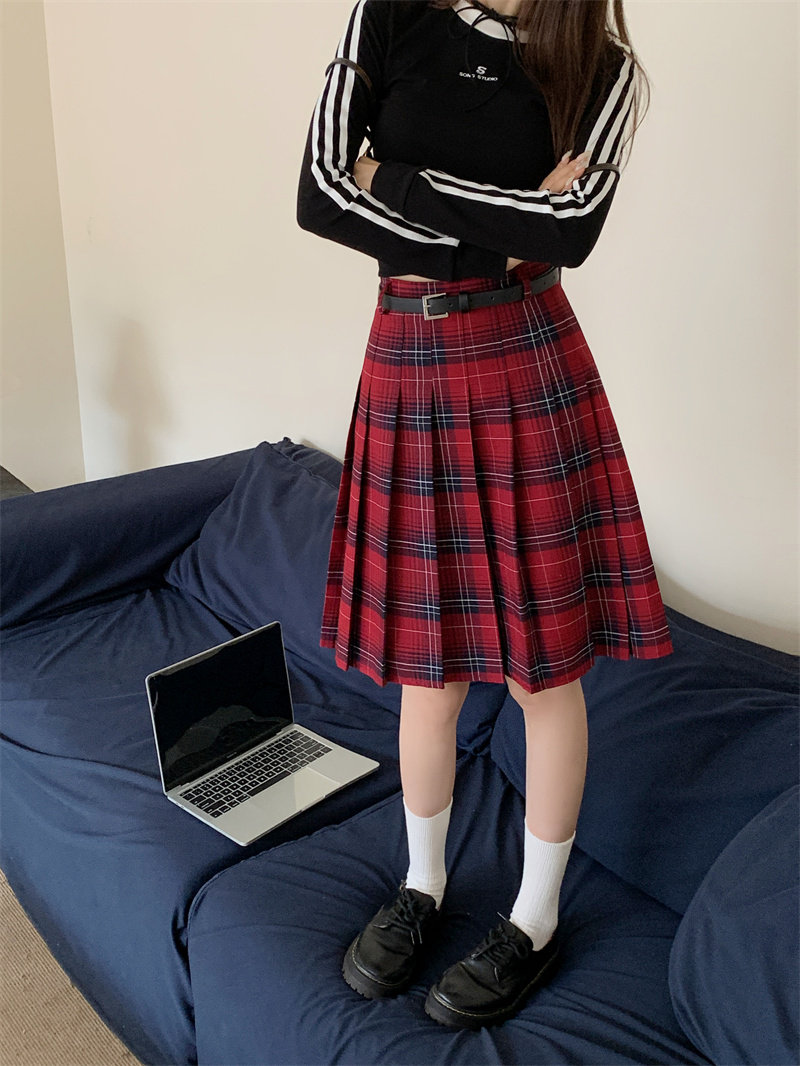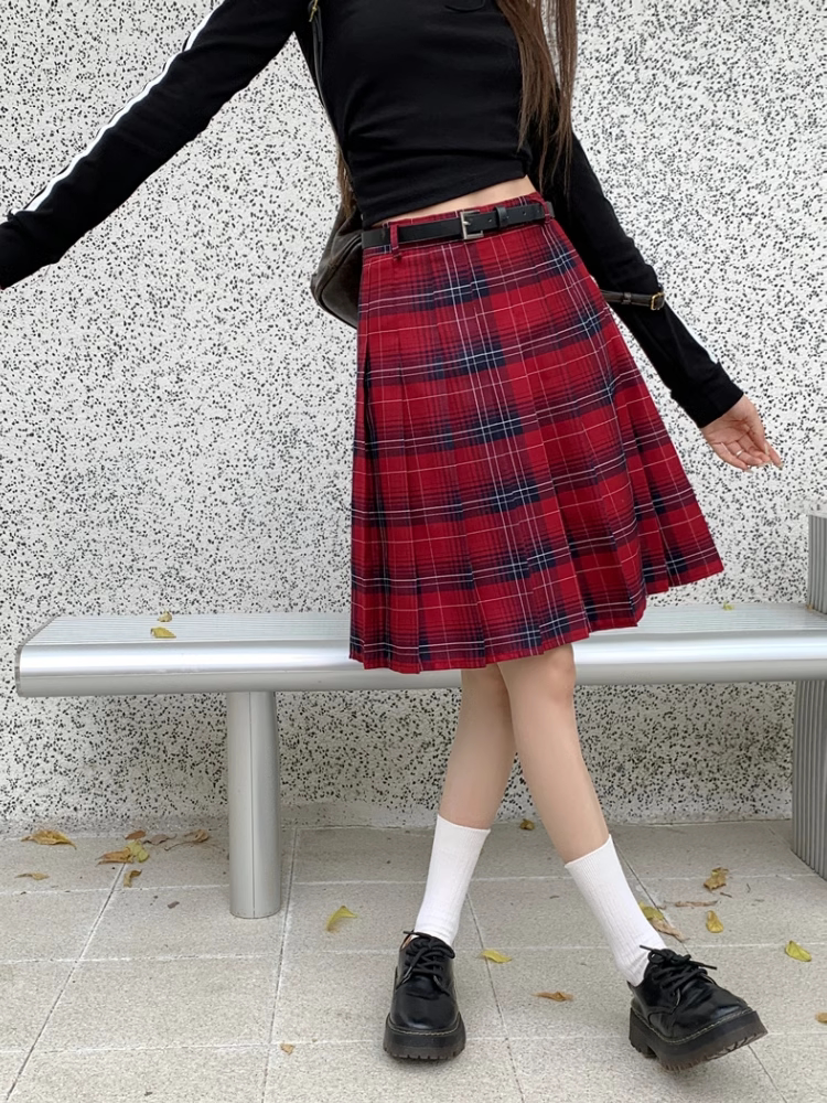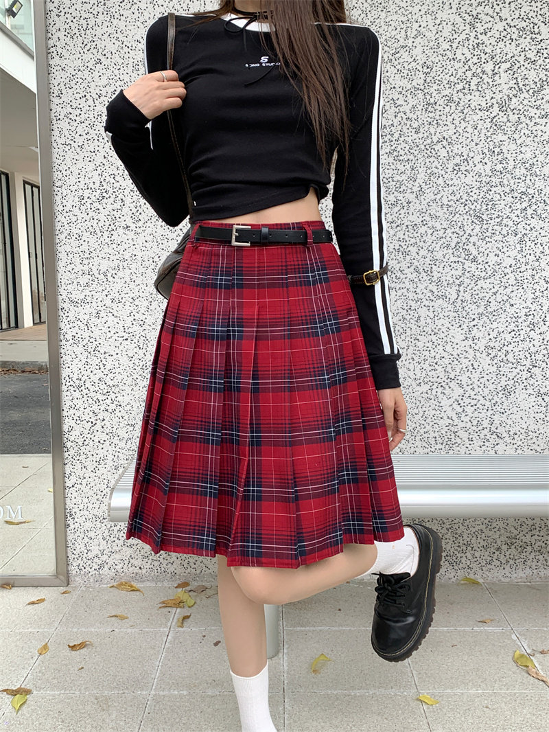 复古格子百褶半身裙女中长款春秋大码学院风jk半裙高腰格纹A字裙
