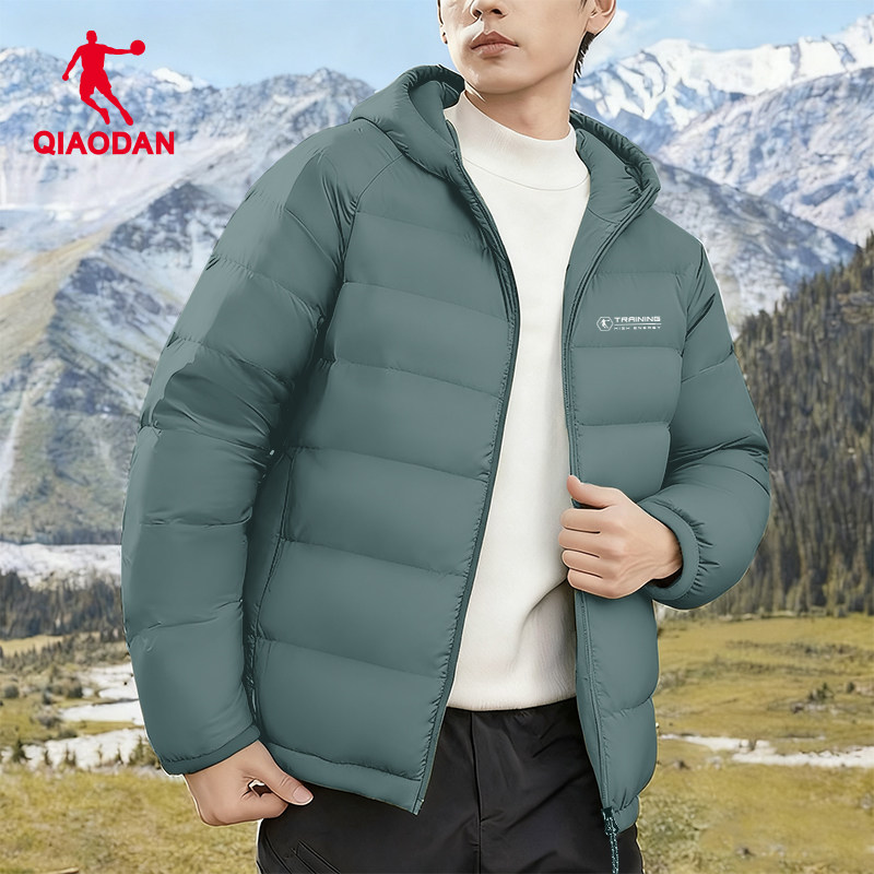 乔丹羽绒服男款轻薄外套2025冬季新款短款连帽鸭绒保暖运动上衣男