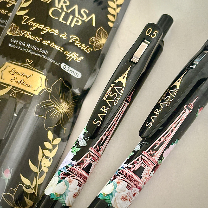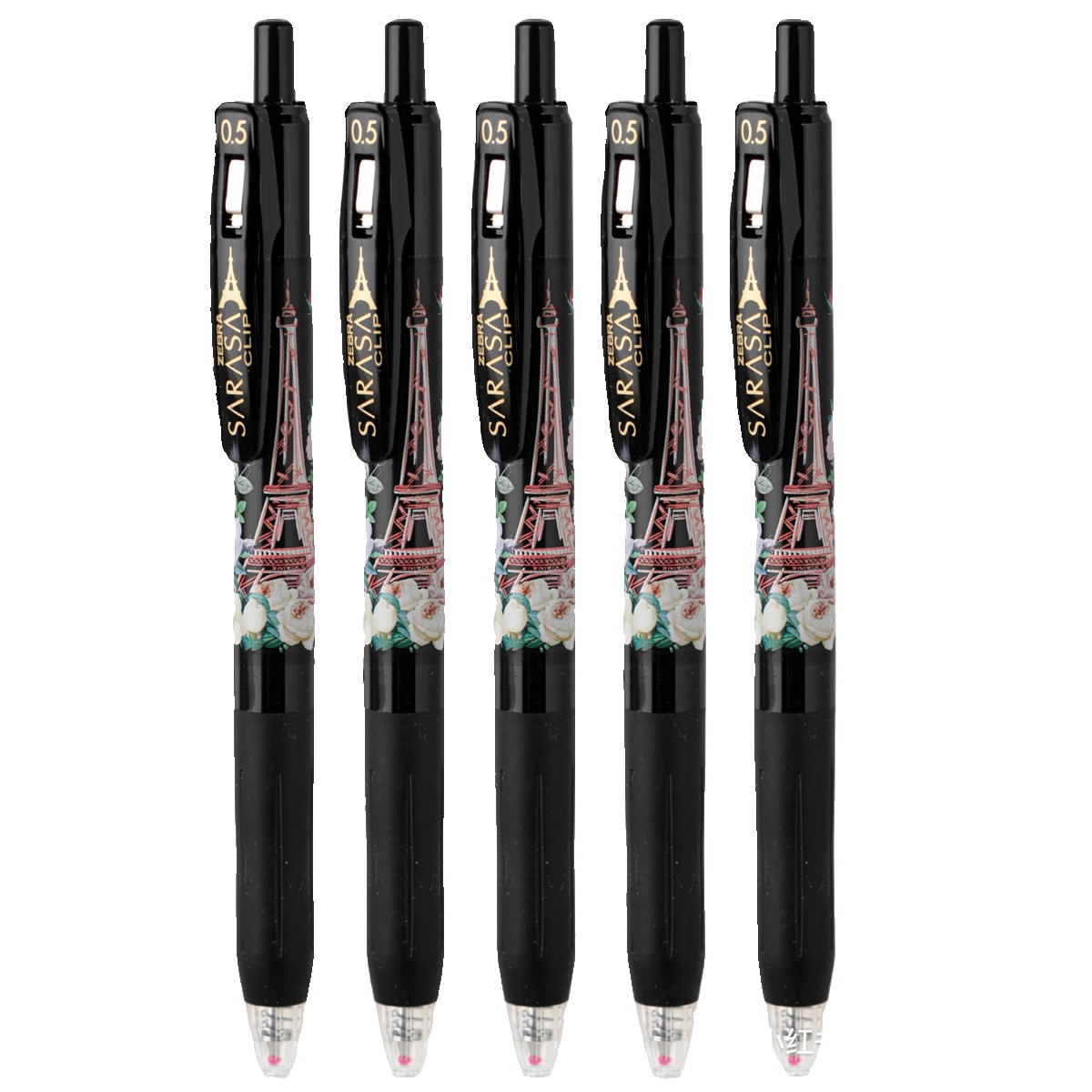 新品ZEBRA斑马中性笔限定款法国盛开巴黎之铁塔玫瑰花朵中性笔稀有大容量水笔学生用考试刷题黑笔0.5mm