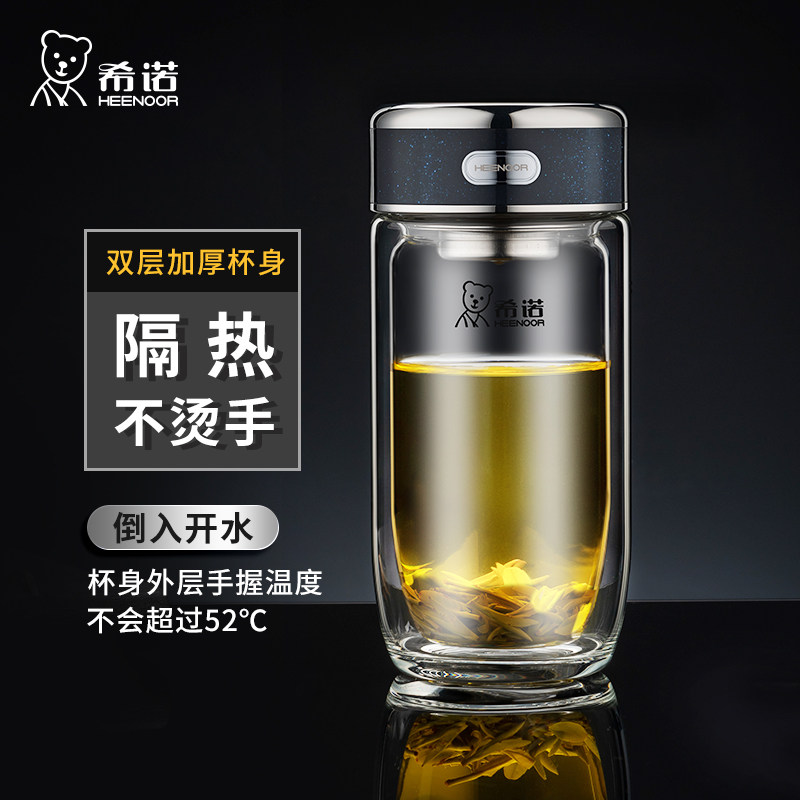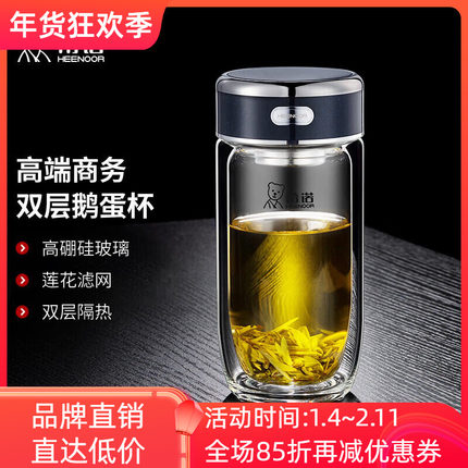 希诺双层玻璃杯鹅蛋男女士商务办公车载便携高档礼盒礼品喝水杯子