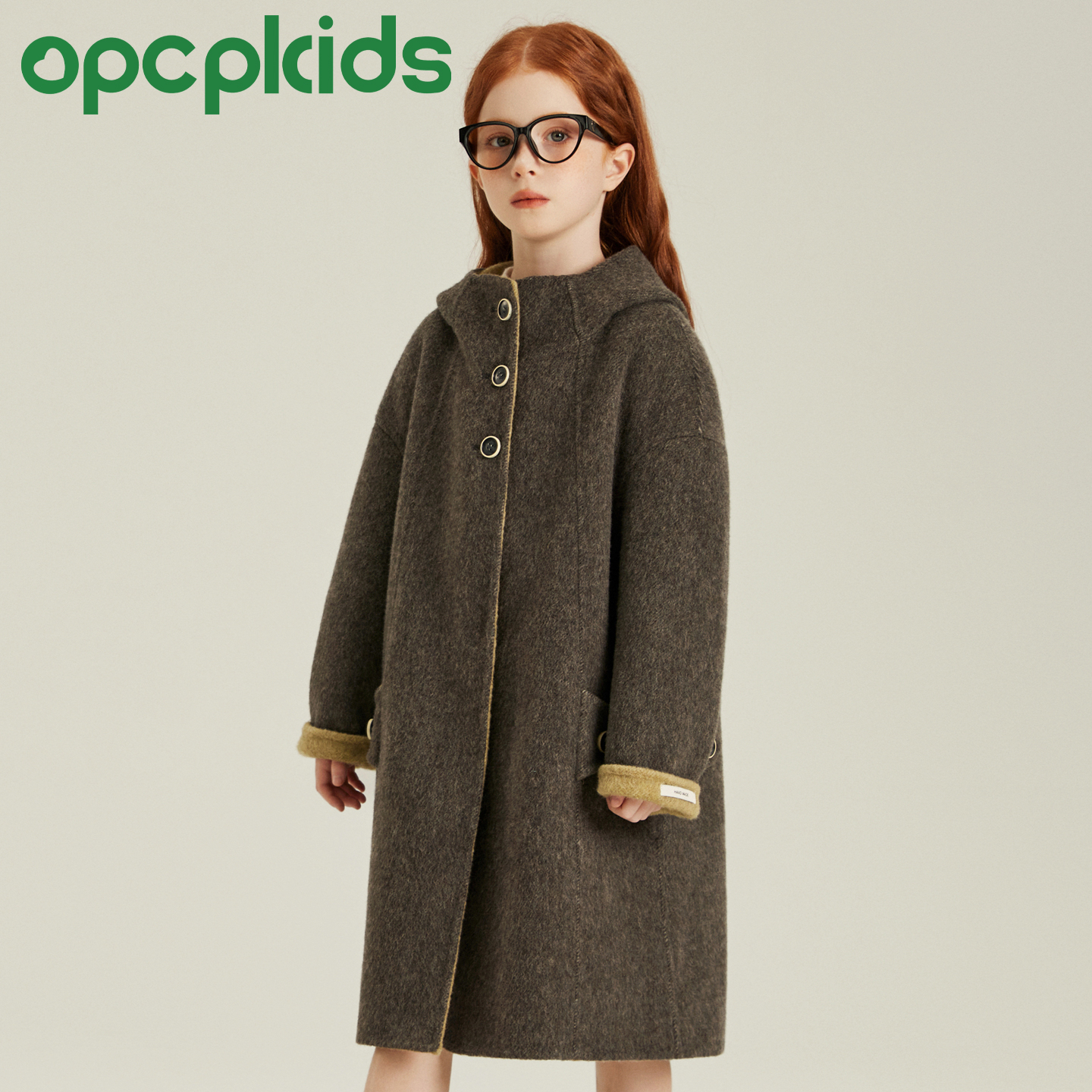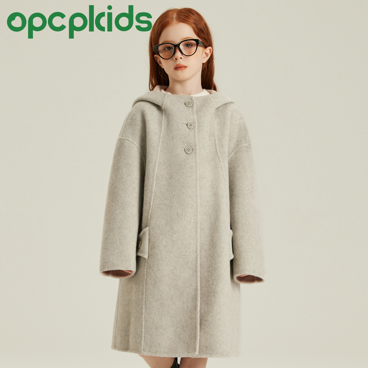 OPCP女童双面羊绒大衣秋冬新款儿童呢子外套亲子羊毛呢保暖中长款