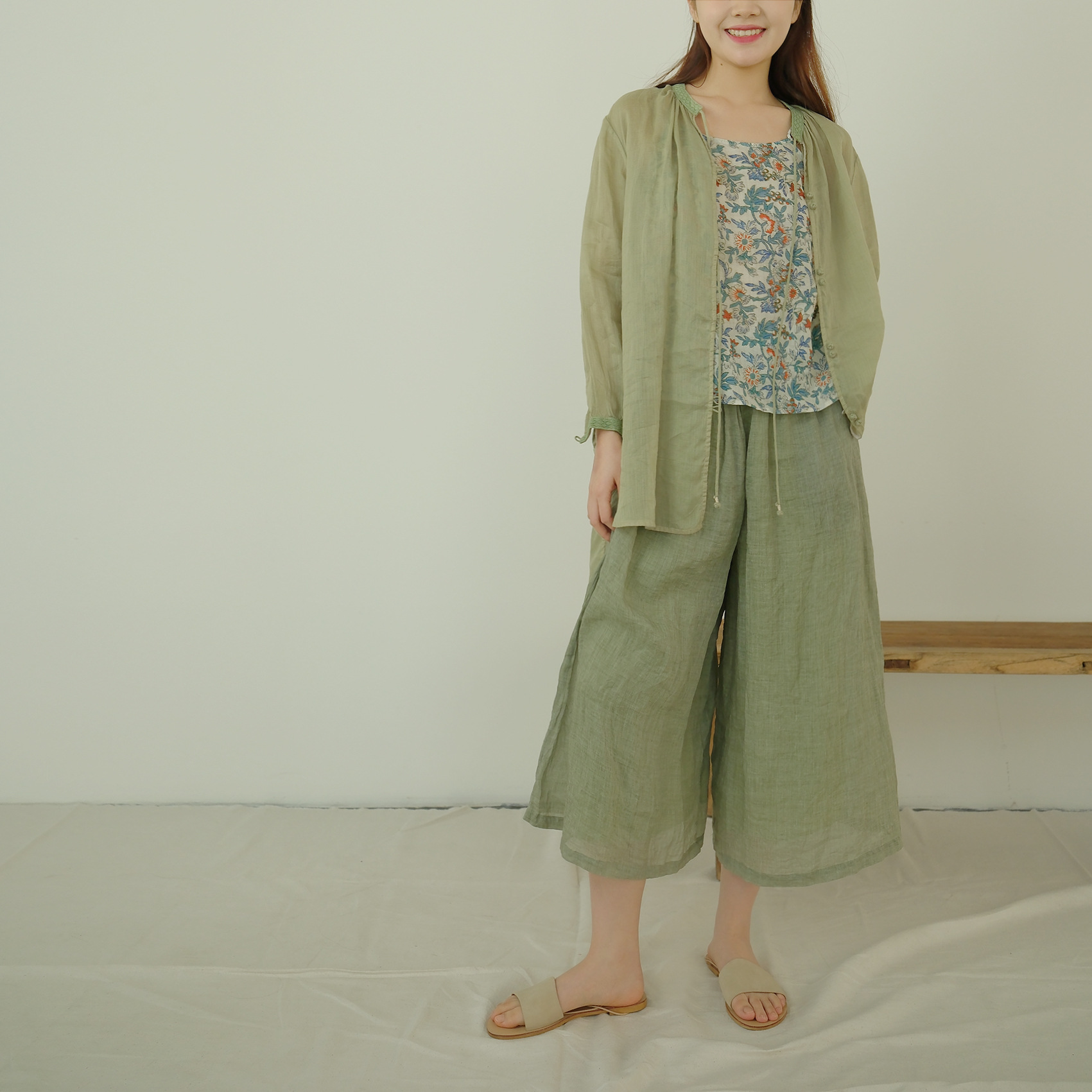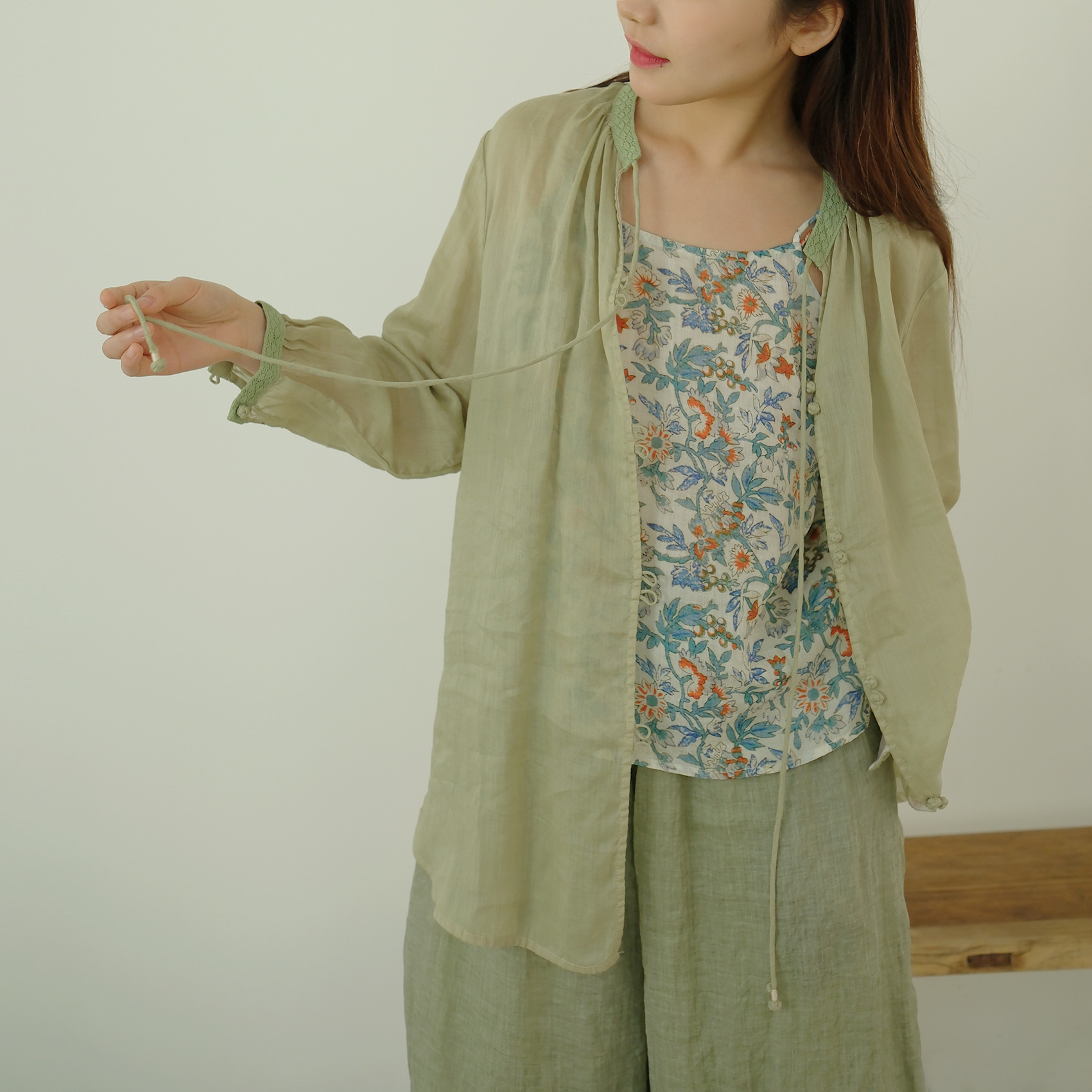 中国风清透苎麻宽松百搭中长开衫仙气禅意中式防晒衬衫上衣防晒女