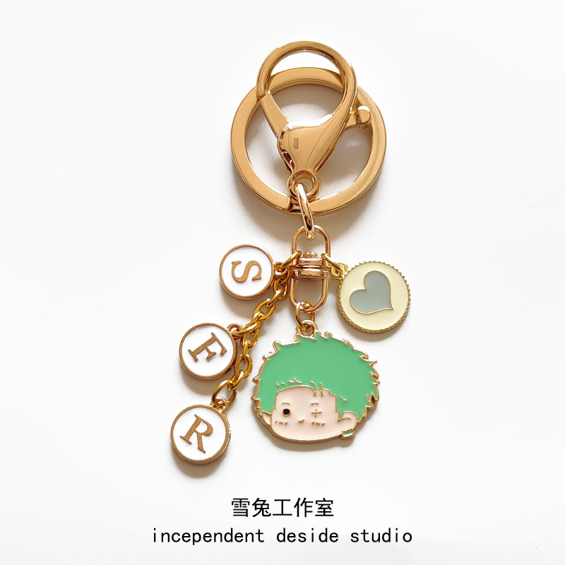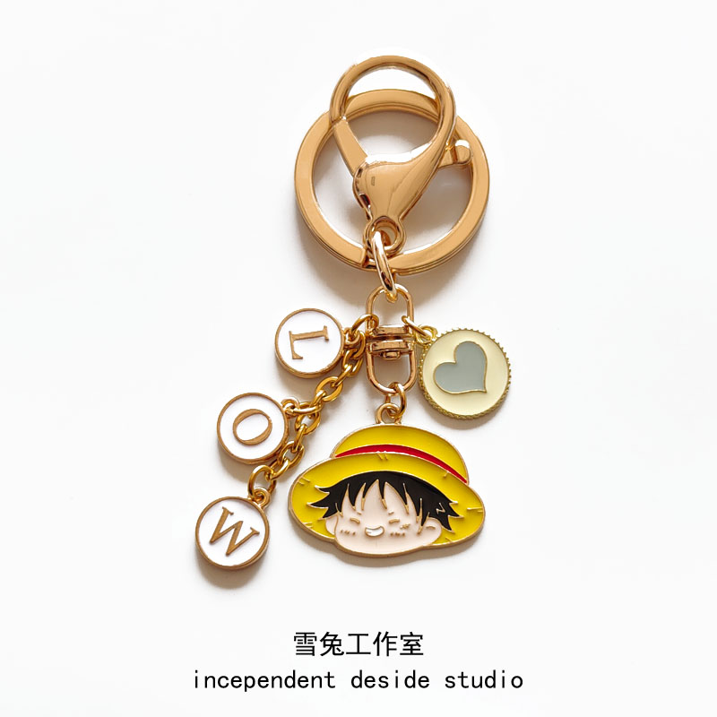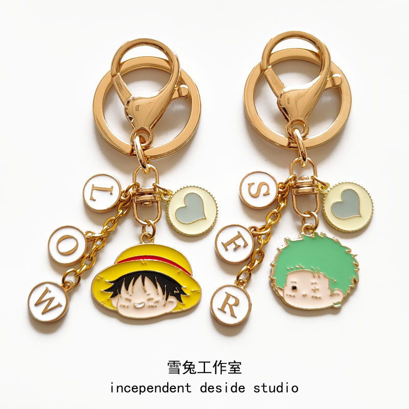 定制英文字母卡通锌合金海贼王索隆路飞钥匙扣汽车包包挂件小挂饰