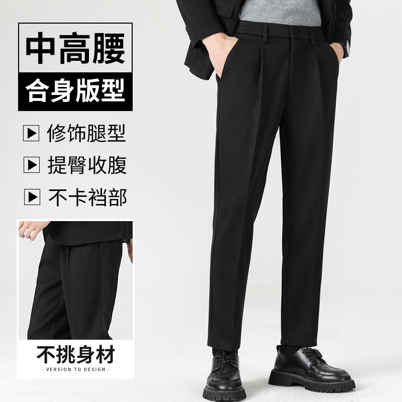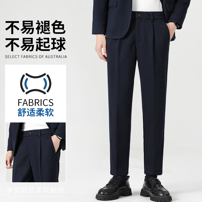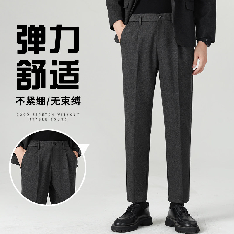 罗蒙小西裤男士秋冬直筒商务休闲修身小脚九9分西裤职业西装裤男