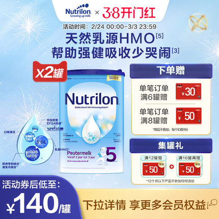 荷兰牛栏原装进口hmo幼儿5段配方奶粉2周岁以上诺优能荷兰版双罐