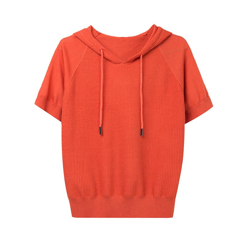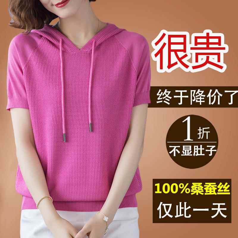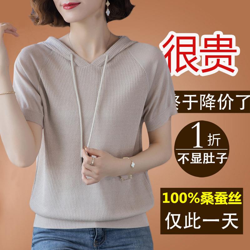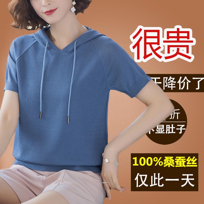 夏装新款带帽t恤女薄款桑蚕丝短袖冰丝针织小衫杭州大牌真丝上衣