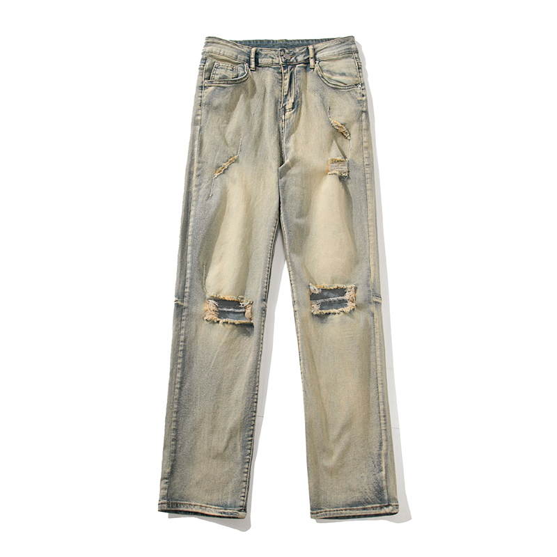衣品天成Eptison美式复古水洗做旧破洞牛仔裤男宽松直筒阔腿长裤