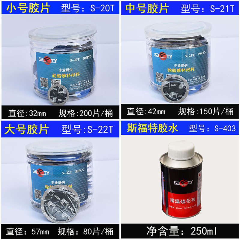 斯福特补胎工具轮胎真空胎胶水圆型补片内胎胶片冷补胶皮蘑菇钉