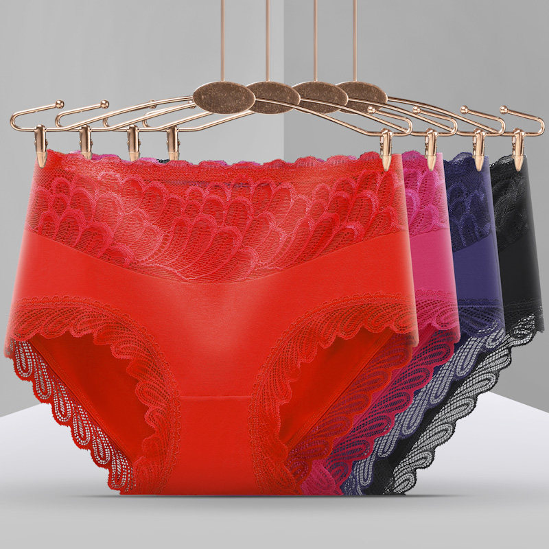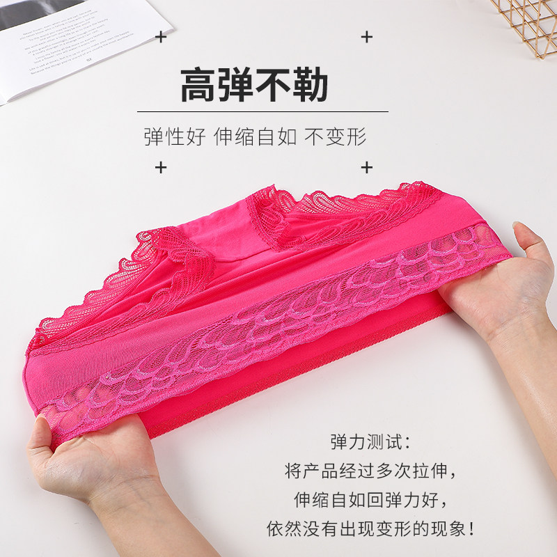 性感蕾丝边莫代尔内裤女透气棉裆大码中腰收腹无痕三角裤头不卷边