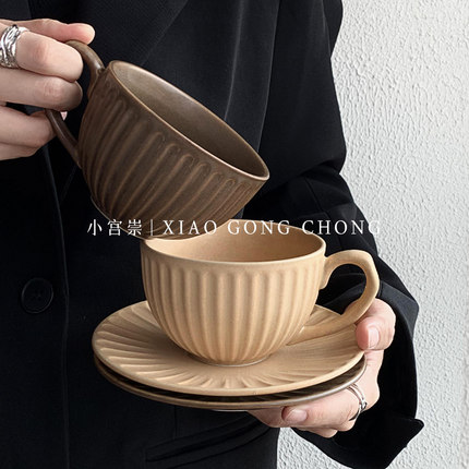 北欧ins风哑光咖啡杯碟家用复古下午茶套装精致花茶杯陶瓷拉花杯