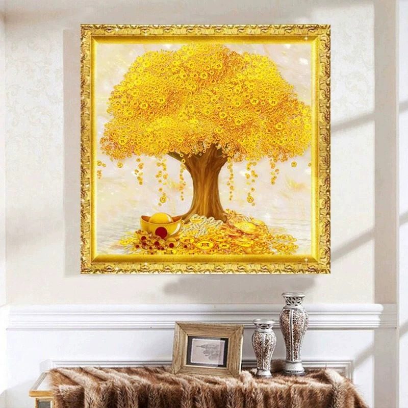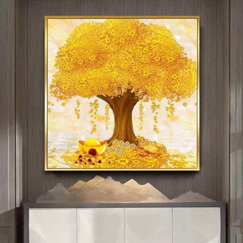 5d钻石画2025新款满钻客厅黄金满地发财树点砖贴画水晶2024十字绣