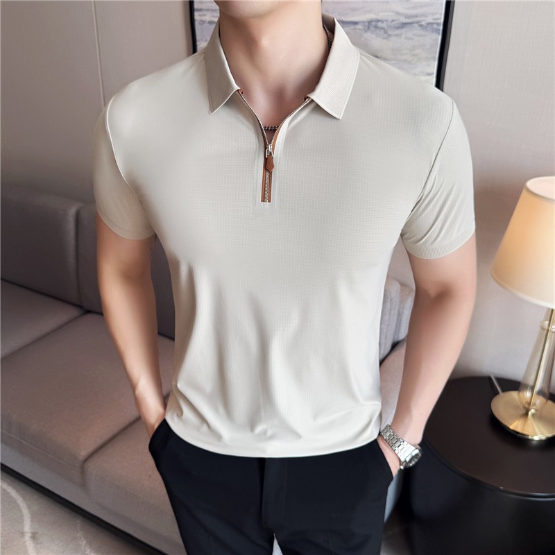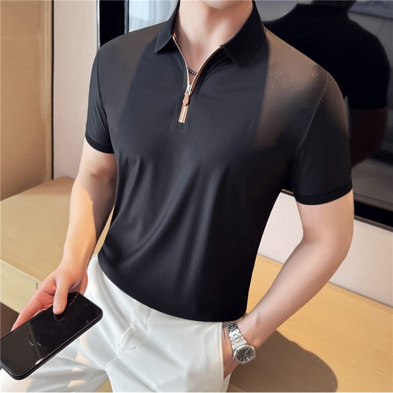 凉感抗菌短袖POLO衫男士夏季半拉链开领翻领t恤男纯色体恤AA27