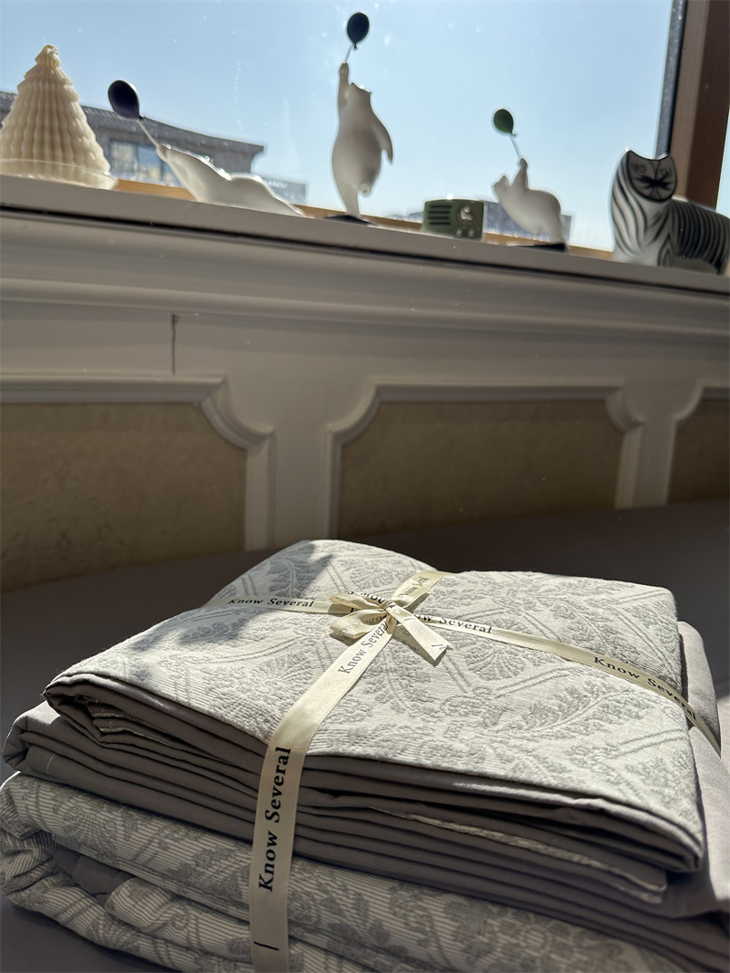 ins水洗棉提花灰色复古民宿风床上四件套全棉纯棉文艺被套床单1.8