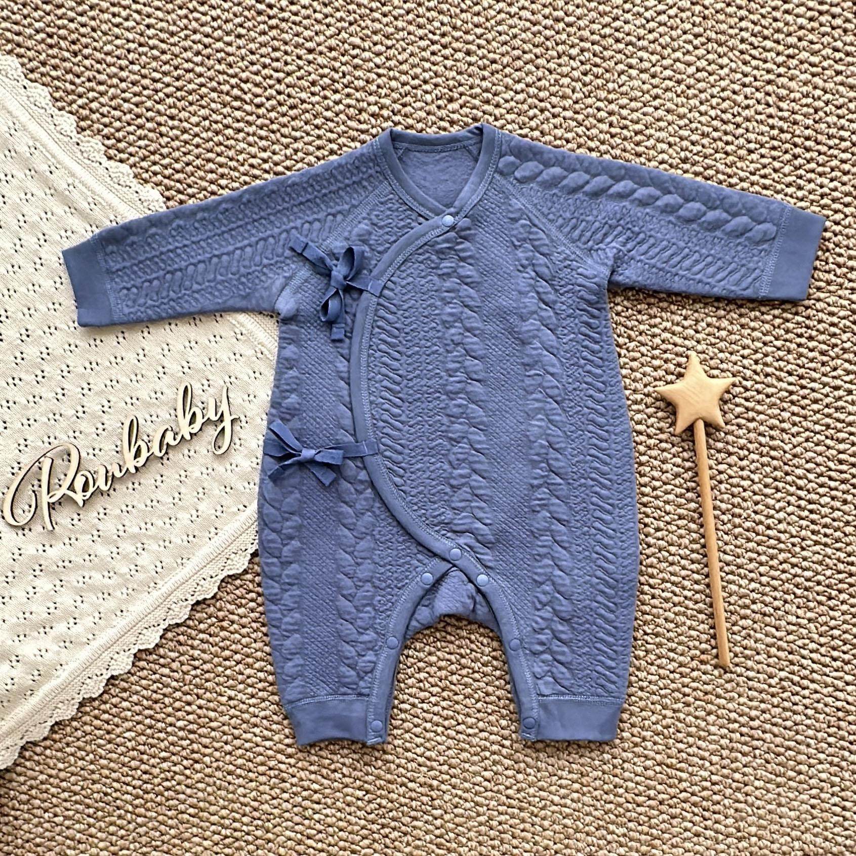 新生婴儿儿夹棉衣服秋冬季宝宝空气棉连体哈衣纯棉保暖加棉爬爬服
