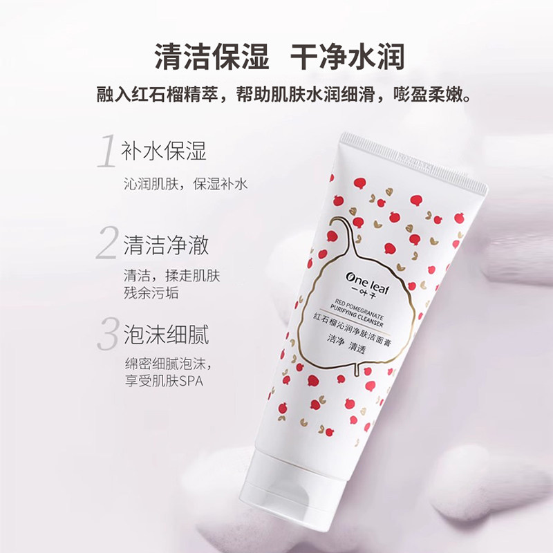 一叶子红石榴洗面奶补水保湿清洁干净不紧绷男女士洁面乳膏学生