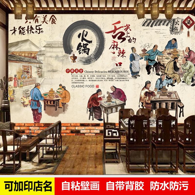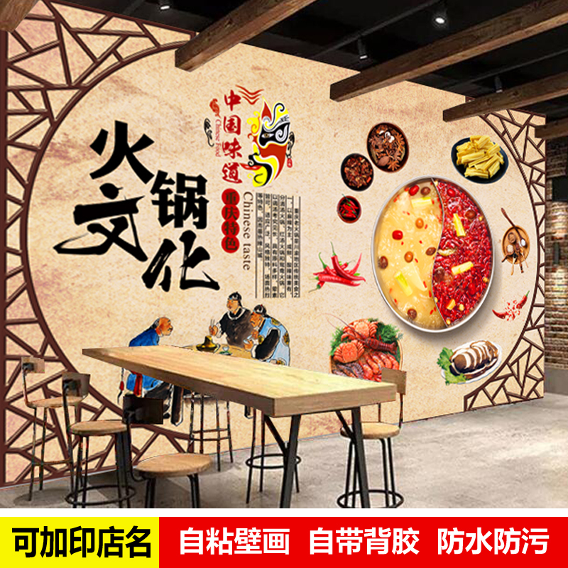 自粘墙贴画重庆火锅壁画火锅店餐饮店饭店背景墙画装饰画防水壁纸