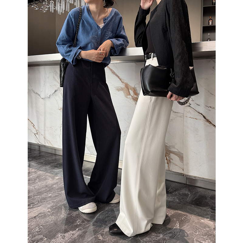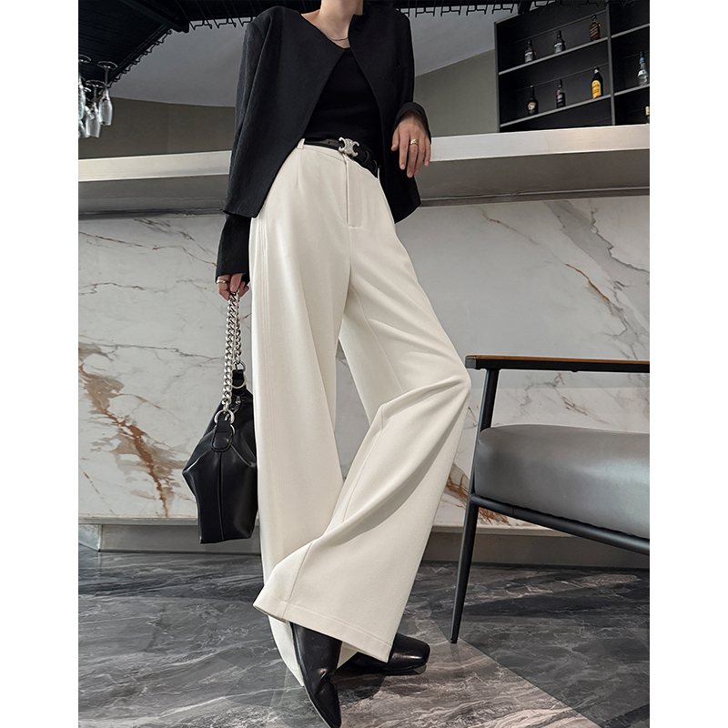 白色阔腿裤女春秋高腰垂坠感直筒显瘦绵羊毛松弛感拖地天丝西装裤