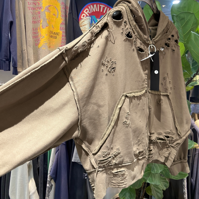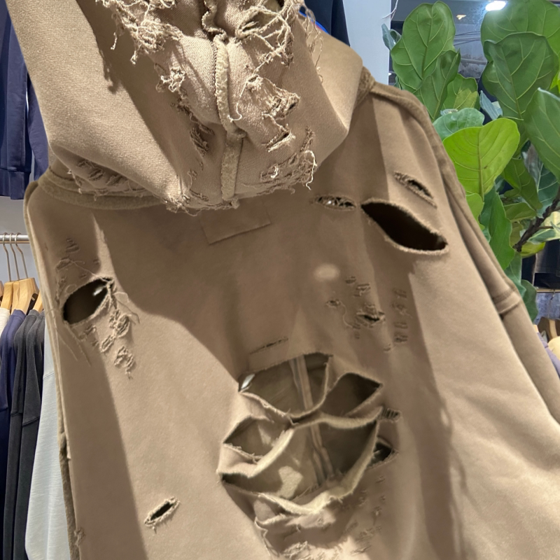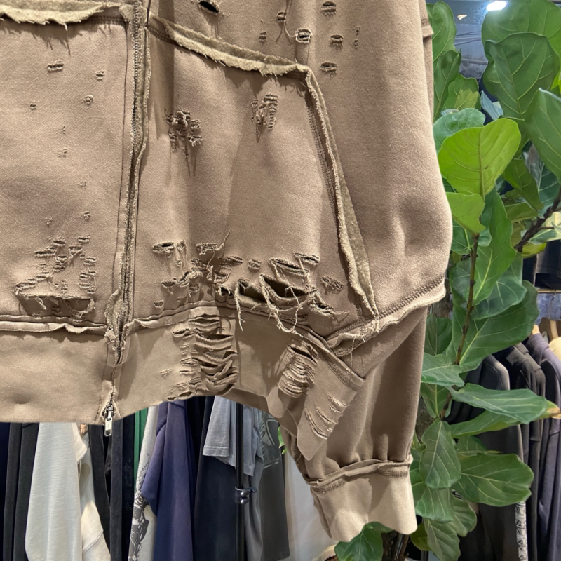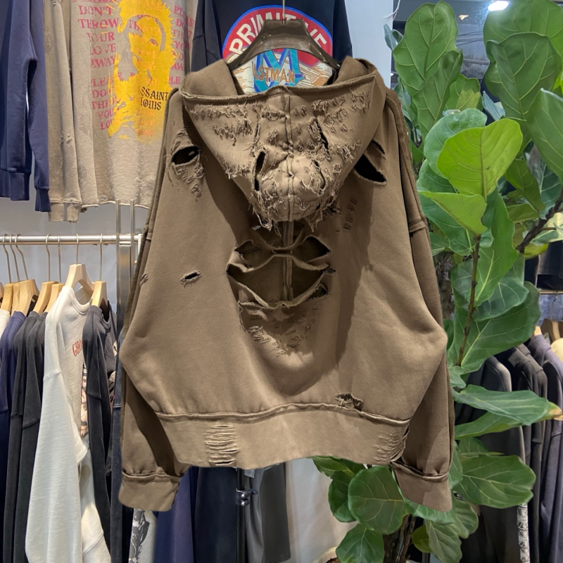 档口实拍 美式复古朴彩英 关晓彤同款糜烂破洞拉链卫衣做旧外套潮