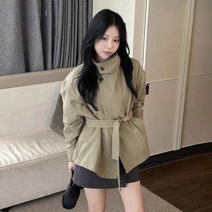 英伦风立领绑带收腰显瘦风衣外套女2025秋季新款小众短款夹克上衣