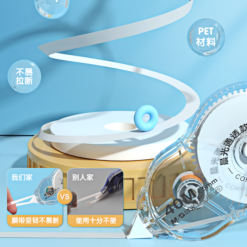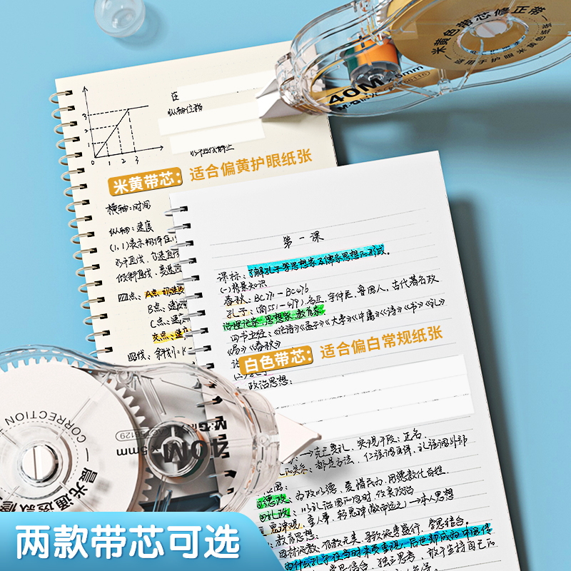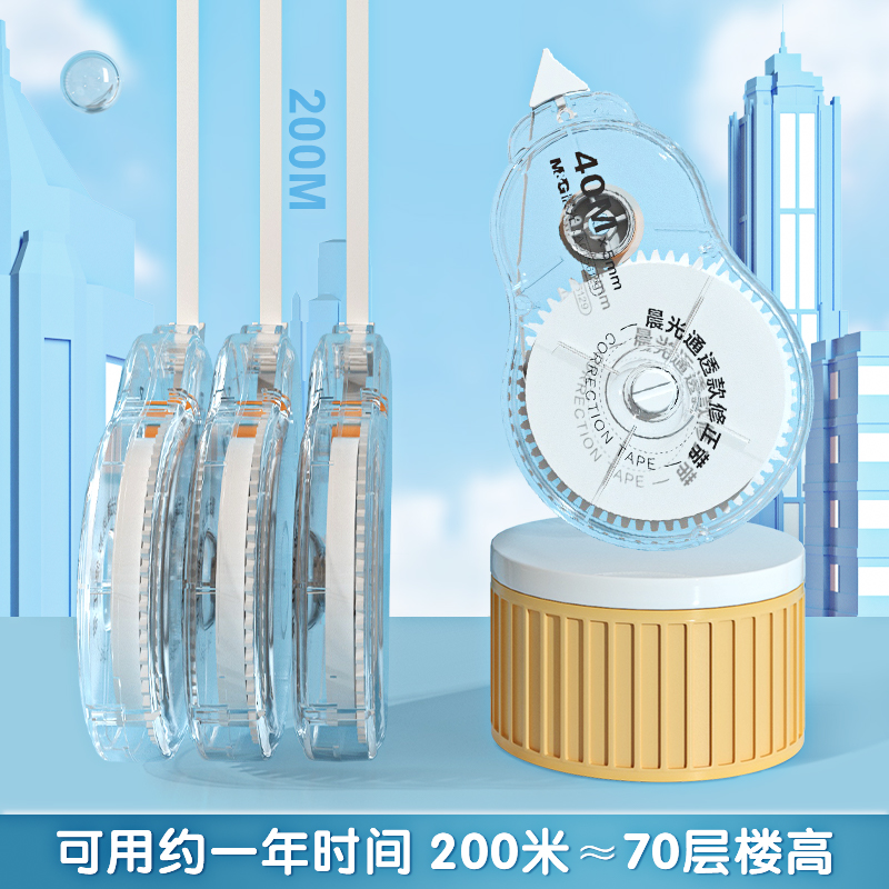 修正带晨光涂改带小学生实惠装大容量改正带400米学生用初中生修改带ins高颜值女生文具用品批发米黄色透明