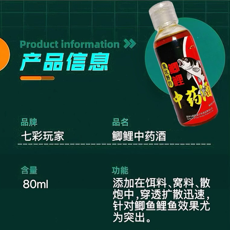 七彩玩家中药酒秋冬季野钓鲫鱼鲤鱼饵料添加剂诱食剂黑坑专用小药