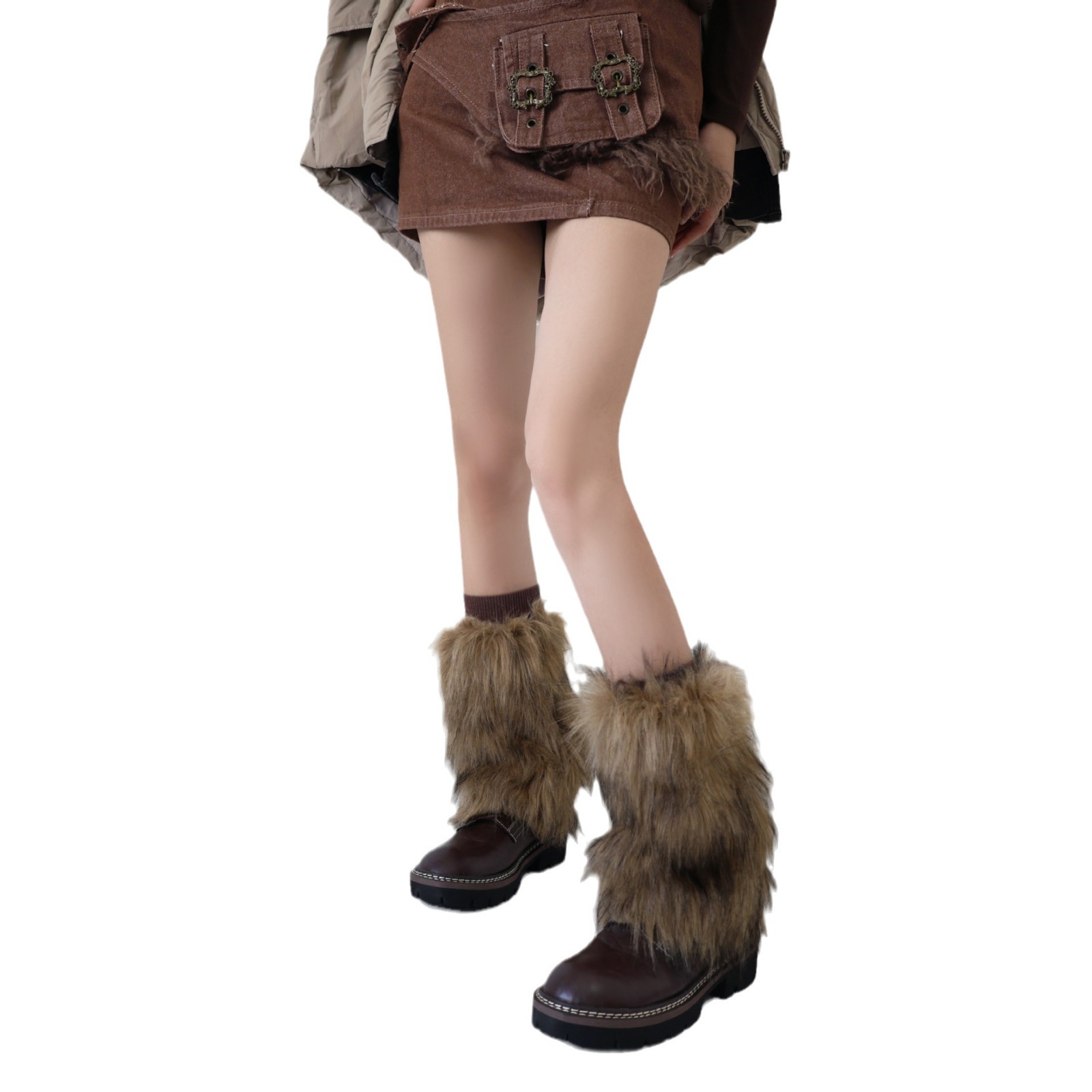 冬季复古摩登辣妹毛毛腿套y2k皮草靴子袜套欧美拍照显瘦保暖袜套
