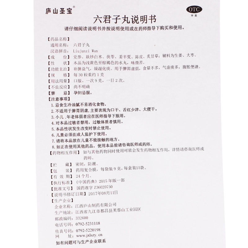六君子丸正品15袋庐山圣宝官方旗舰店中药中成药健脾祛湿香砂香沙