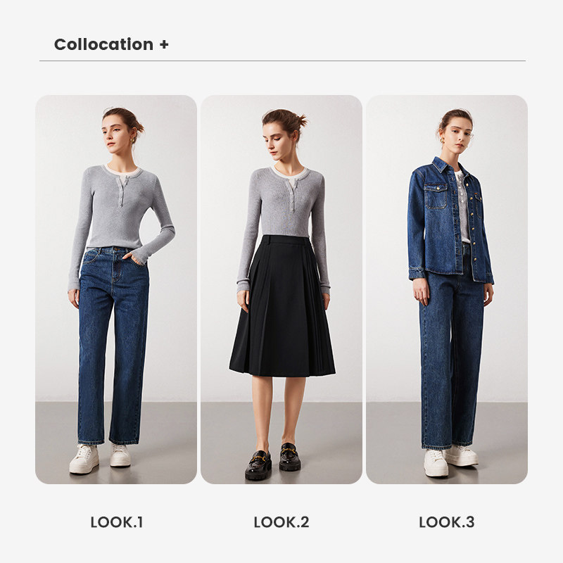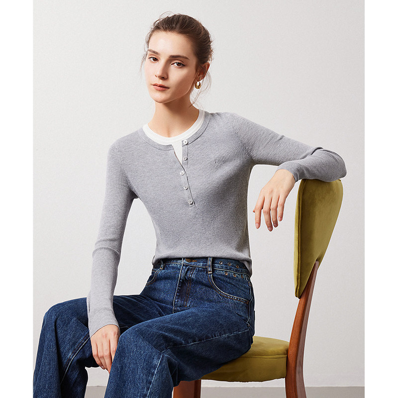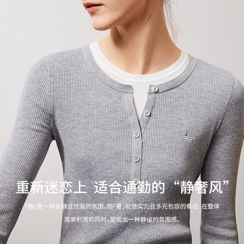 Navigare意大利小帆船短款针织衫女秋季假两件打底衫修身保暖毛衣