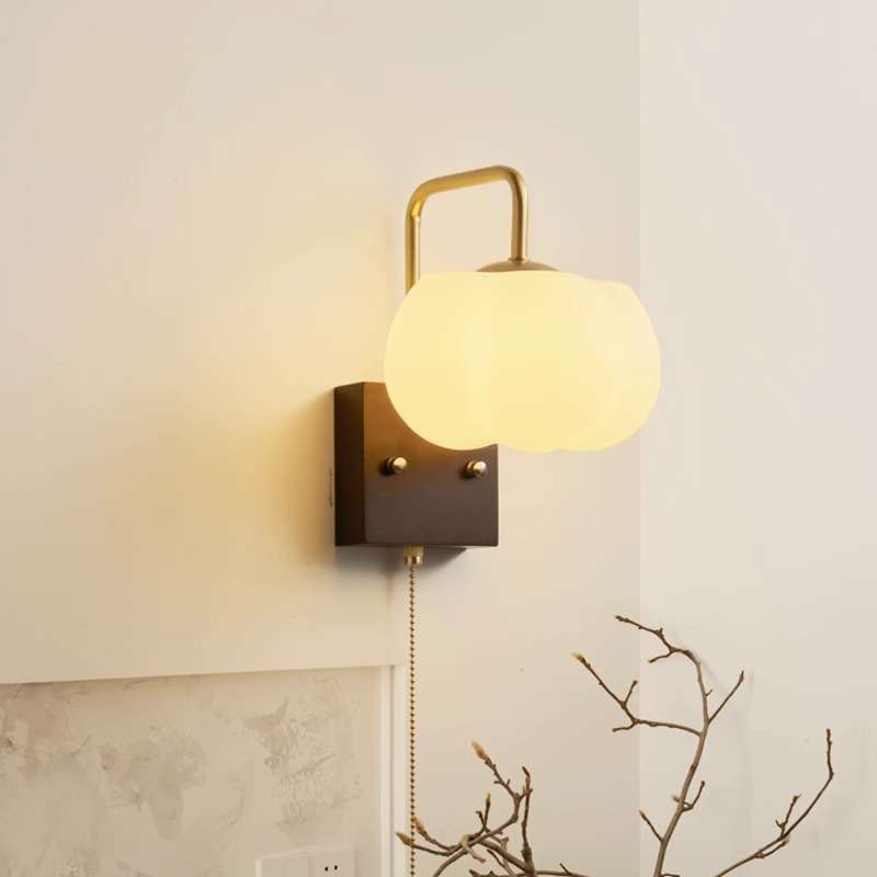 胡桃木色现代LED壁灯新中式南瓜卧室书房间床头灯中国风过道灯具