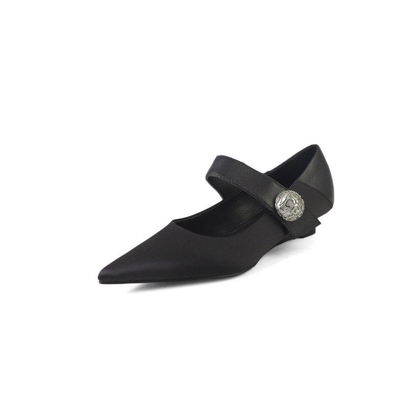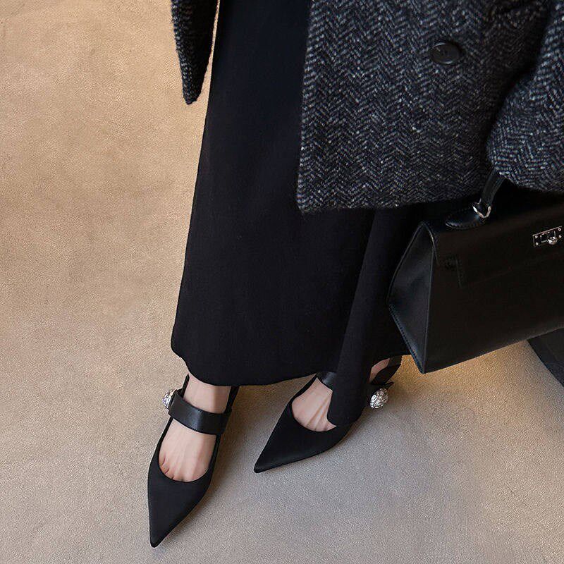 真皮气质尖头小坡跟一字带黑色玛丽珍鞋通勤百搭2026年法式单鞋女