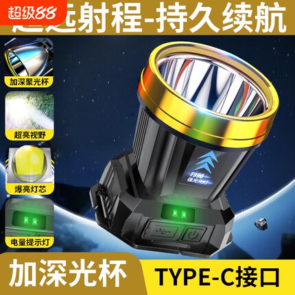 公牛适用强光头灯超亮LED远射超长续航手电筒头戴式钓鱼矿灯感应