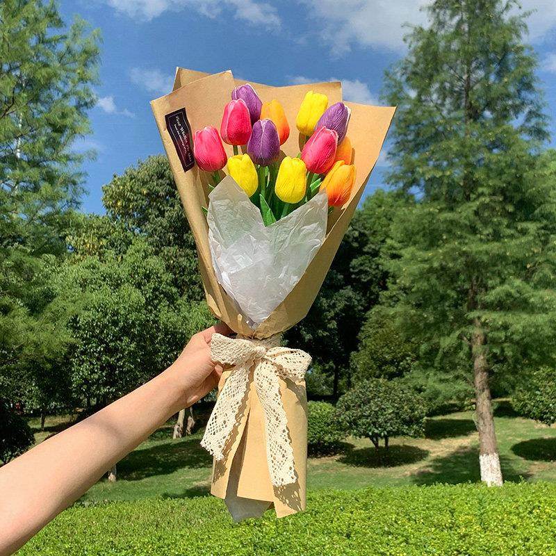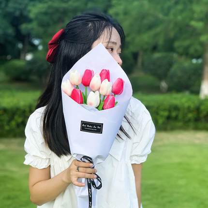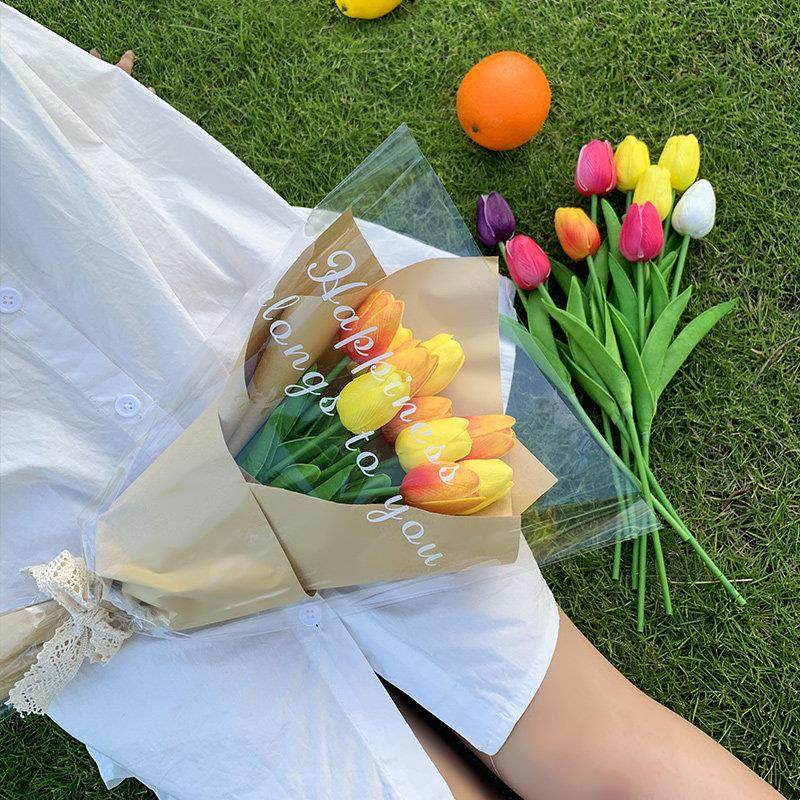 仿真花U束郁金香客厅摆件包装ZPB高档P假花野is拍餐照道n具礼物干