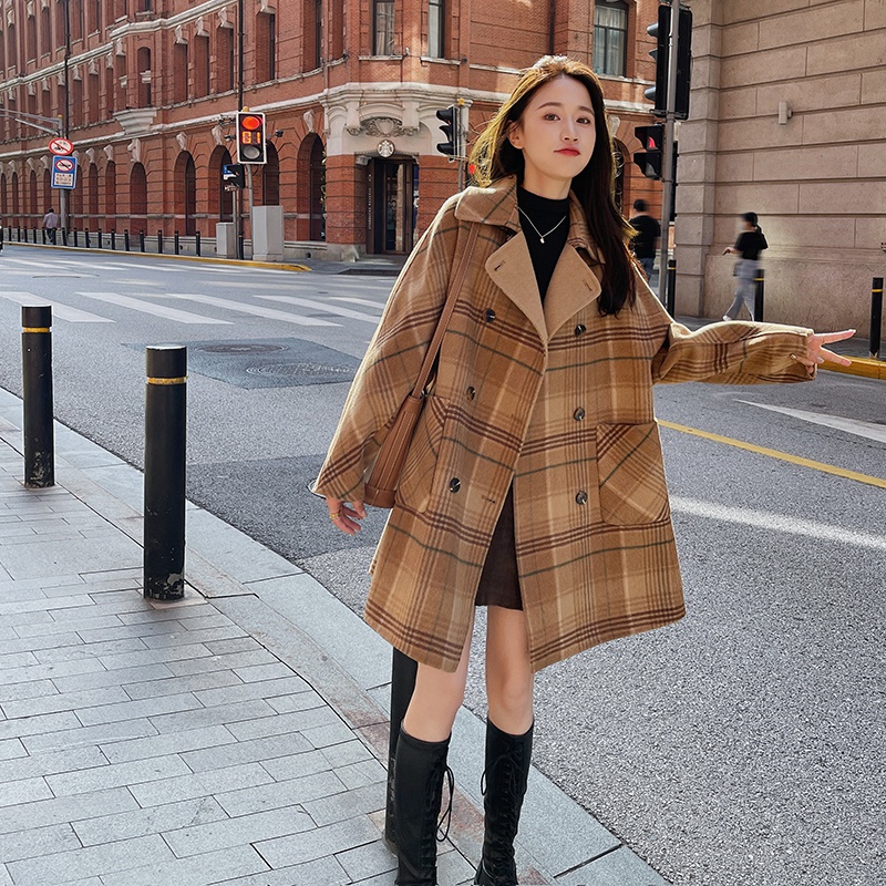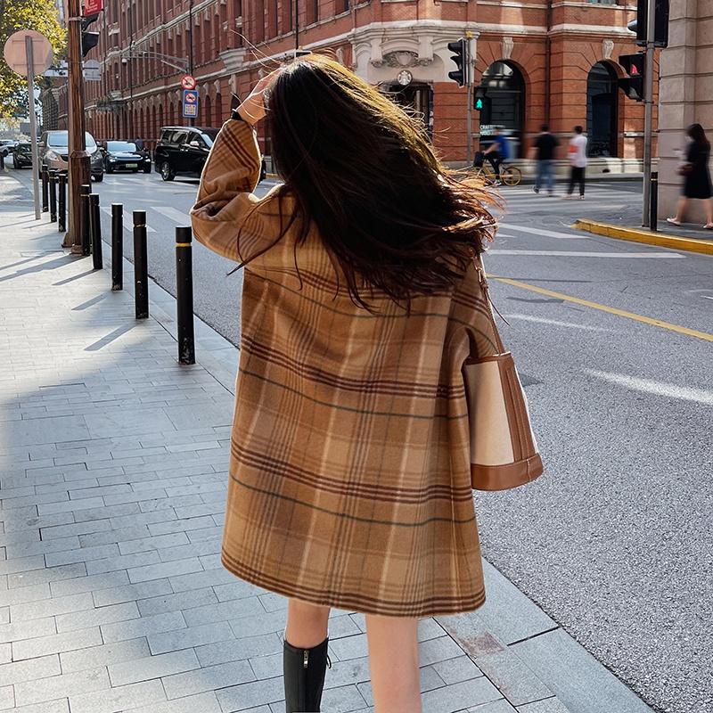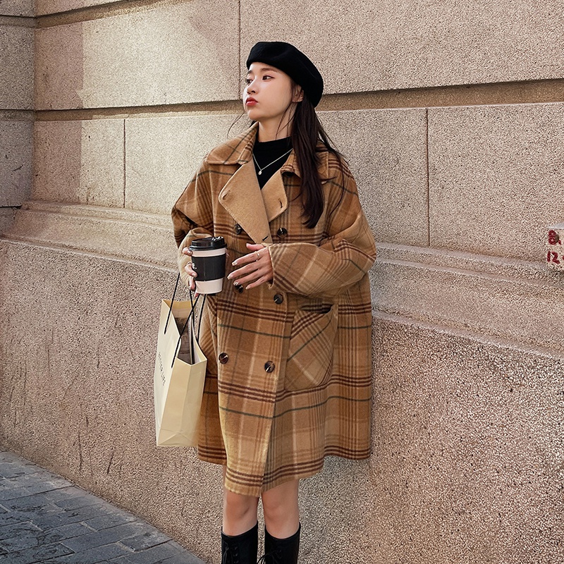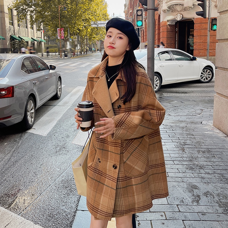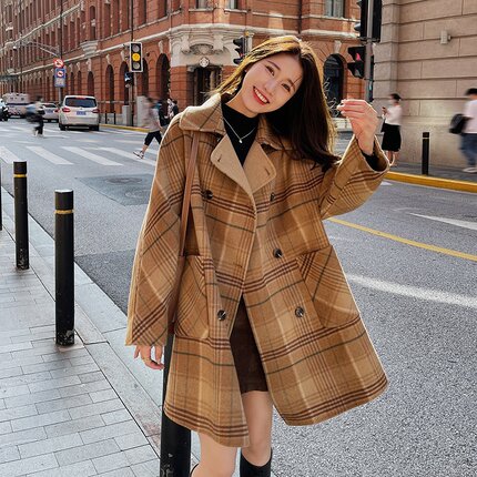 卡其色复古格子双面呢羊绒大衣女2025冬新款超好看中长款毛呢外套