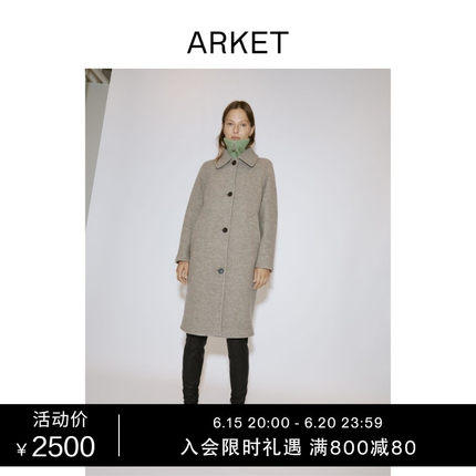 ARKET女装中长款宽松毛呢大衣2022秋冬新款冷淡女大衣中长款