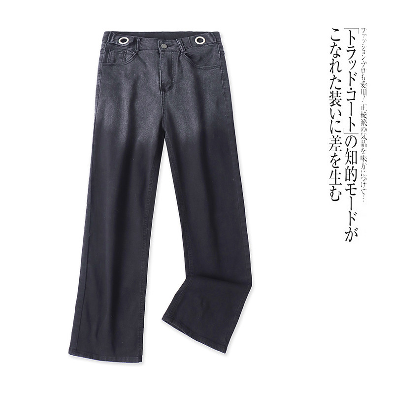 外贸韩版时尚女士牛仔裤2025新款中高腰弹力修身渐变色显瘦直筒裤