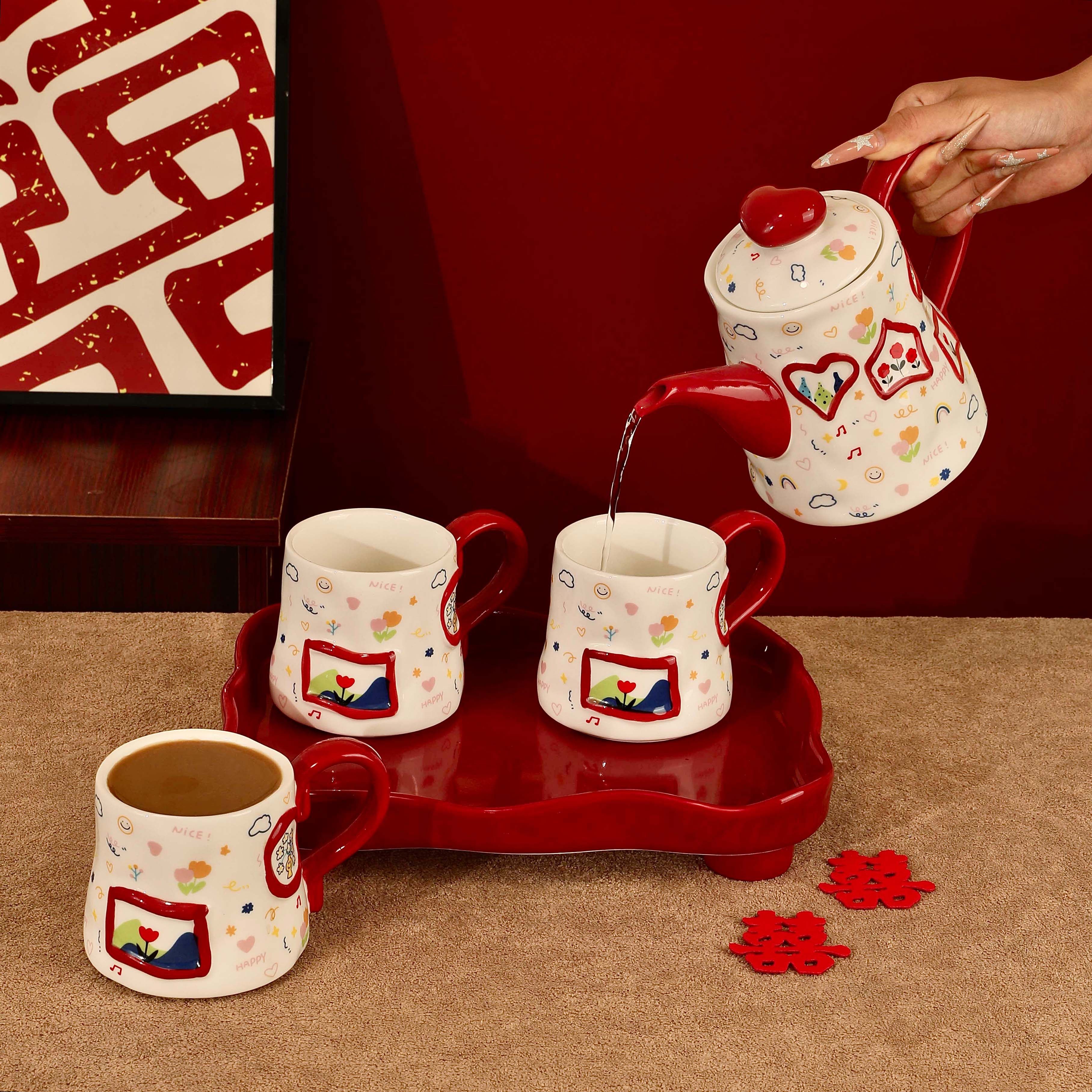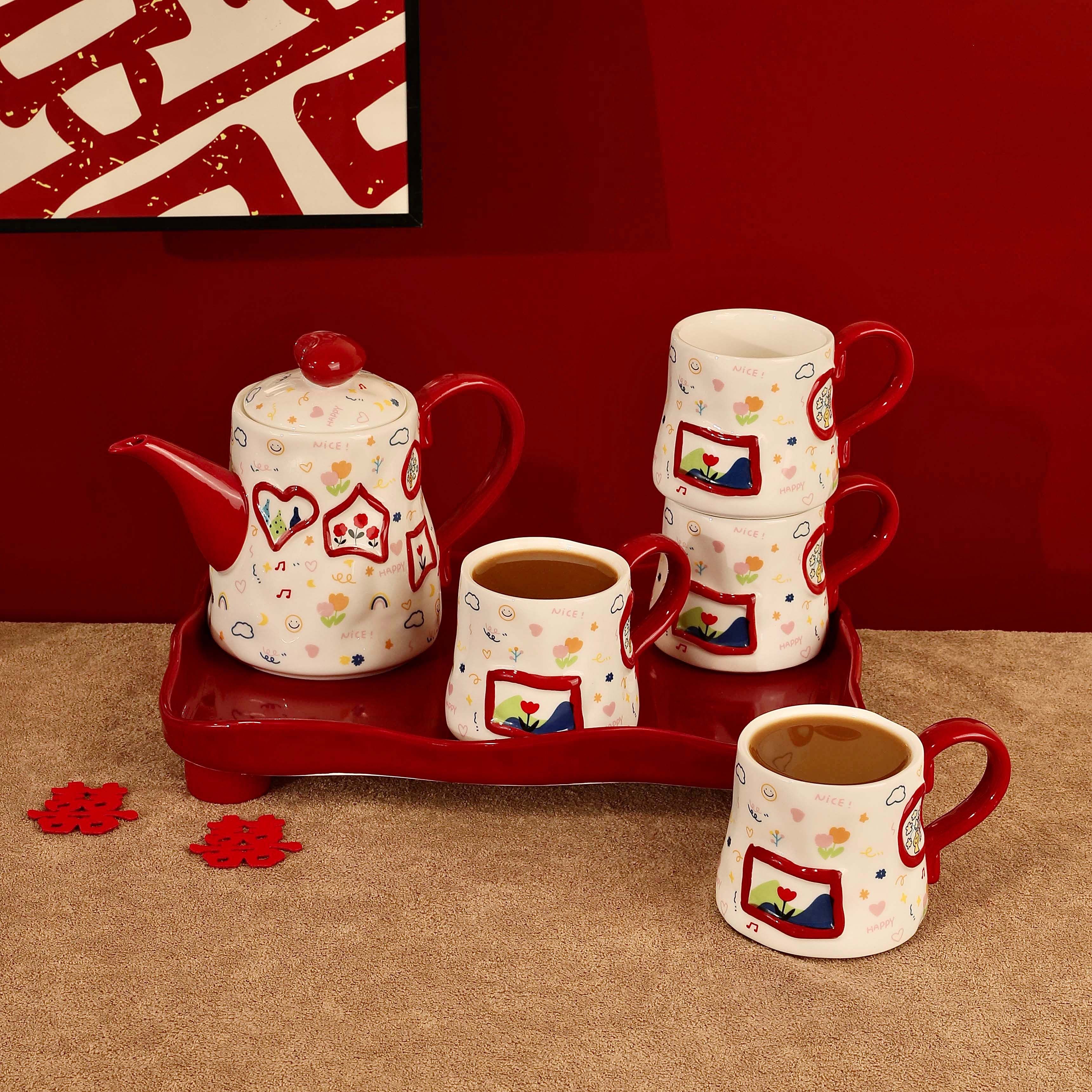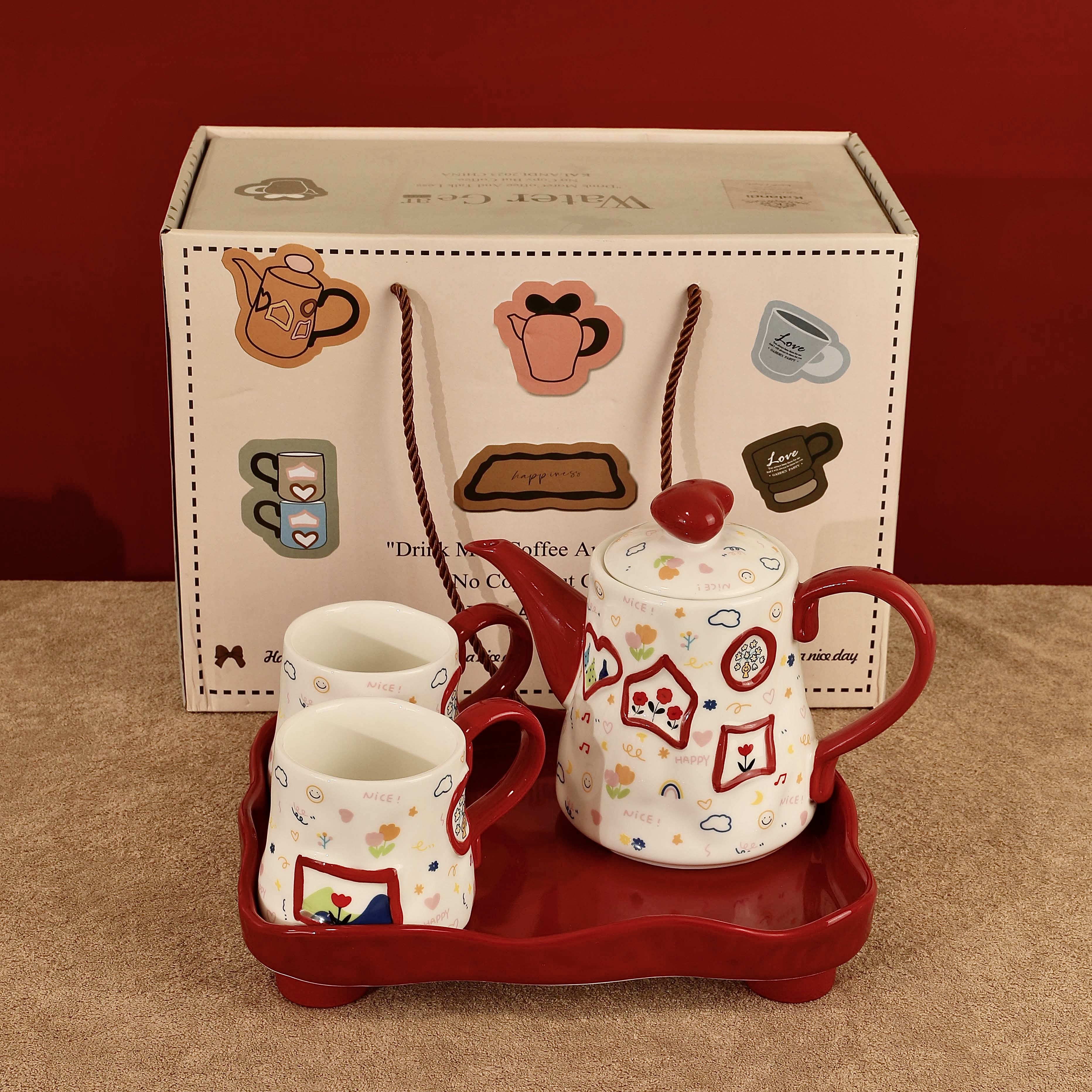 轻奢陶瓷水具套装乔迁新居结婚送礼高级感水杯水壶茶壶茶杯礼盒装