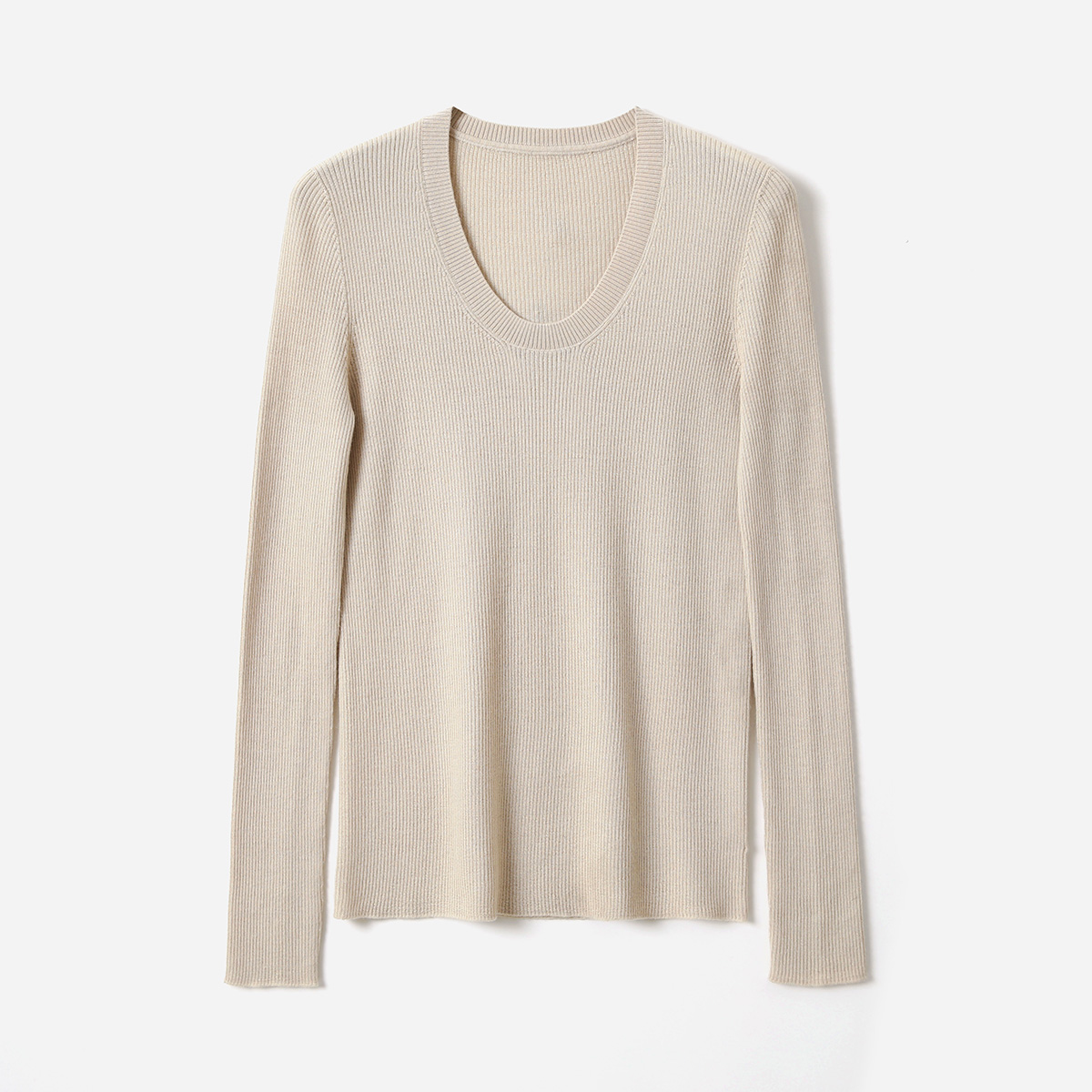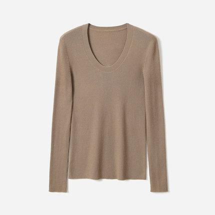 WZT07327 茉莉雅集 KVSS精纺3/68支全羊绒针织套衫U领长袖打底女