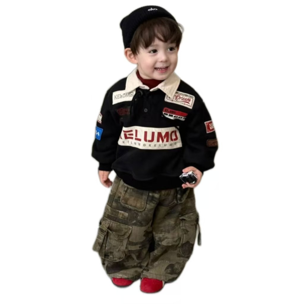 男童超好看冬装套装韩系穿搭童装潮酷2025新款帅气加绒卫衣加厚巨