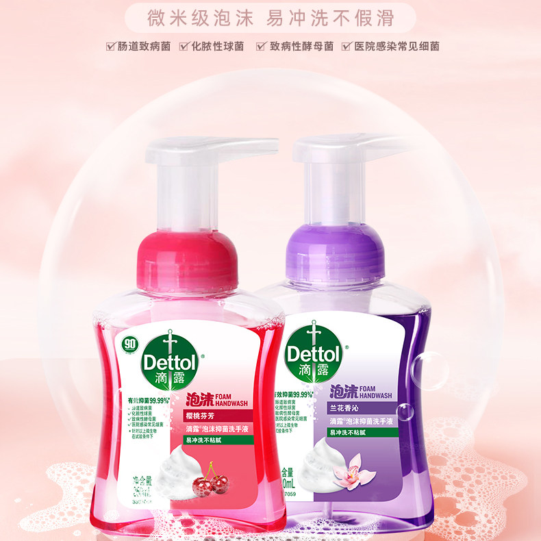 滴露泡沫抑菌洗手液清洁家用按压式泡沫抑菌洗手液樱桃兰花香型