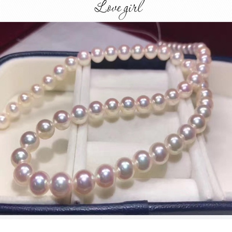 akoya天然珍珠项链baby珠 锁骨链 毛衣链 极强光正圆几乎无暇