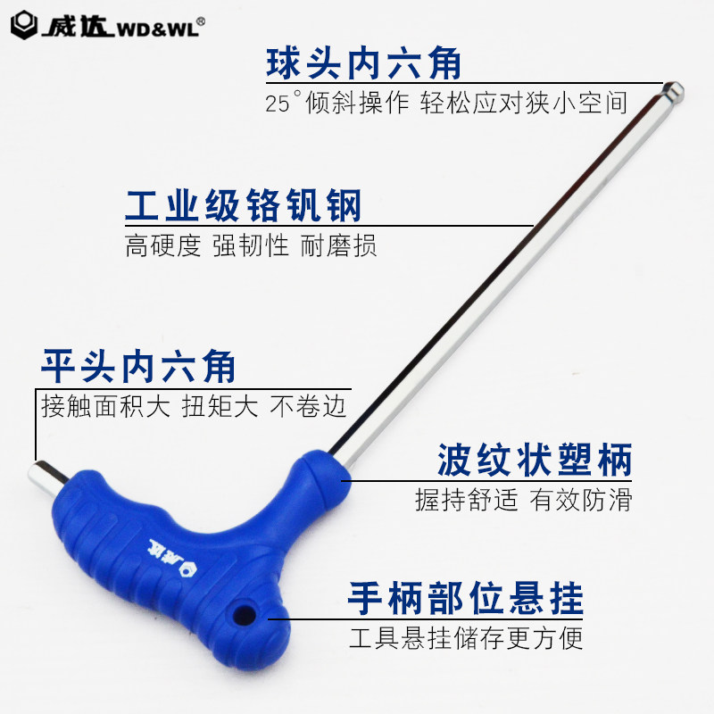 威达拐杖t型球头平头内六角扳手螺丝刀内六角扳手手胶柄五金工具