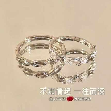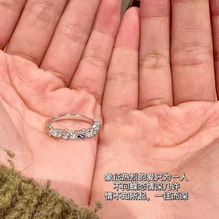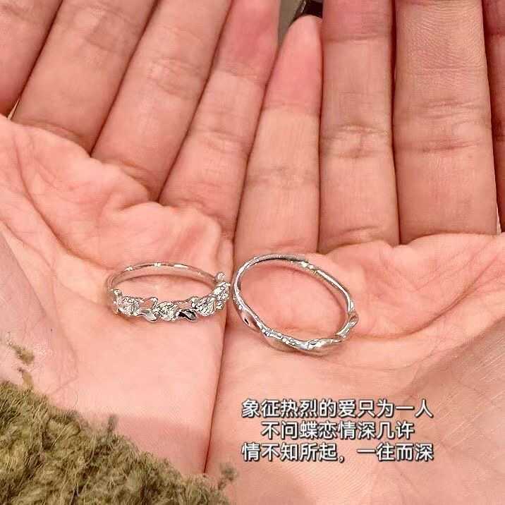 蝶恋情侣对戒ins小众设计感开口可调节轻奢百搭食指戒新款指环潮
