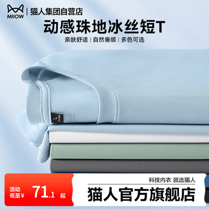 猫人冰丝t恤短袖男凉感透气速干半袖2026年夏季新款纯色男装上衣J